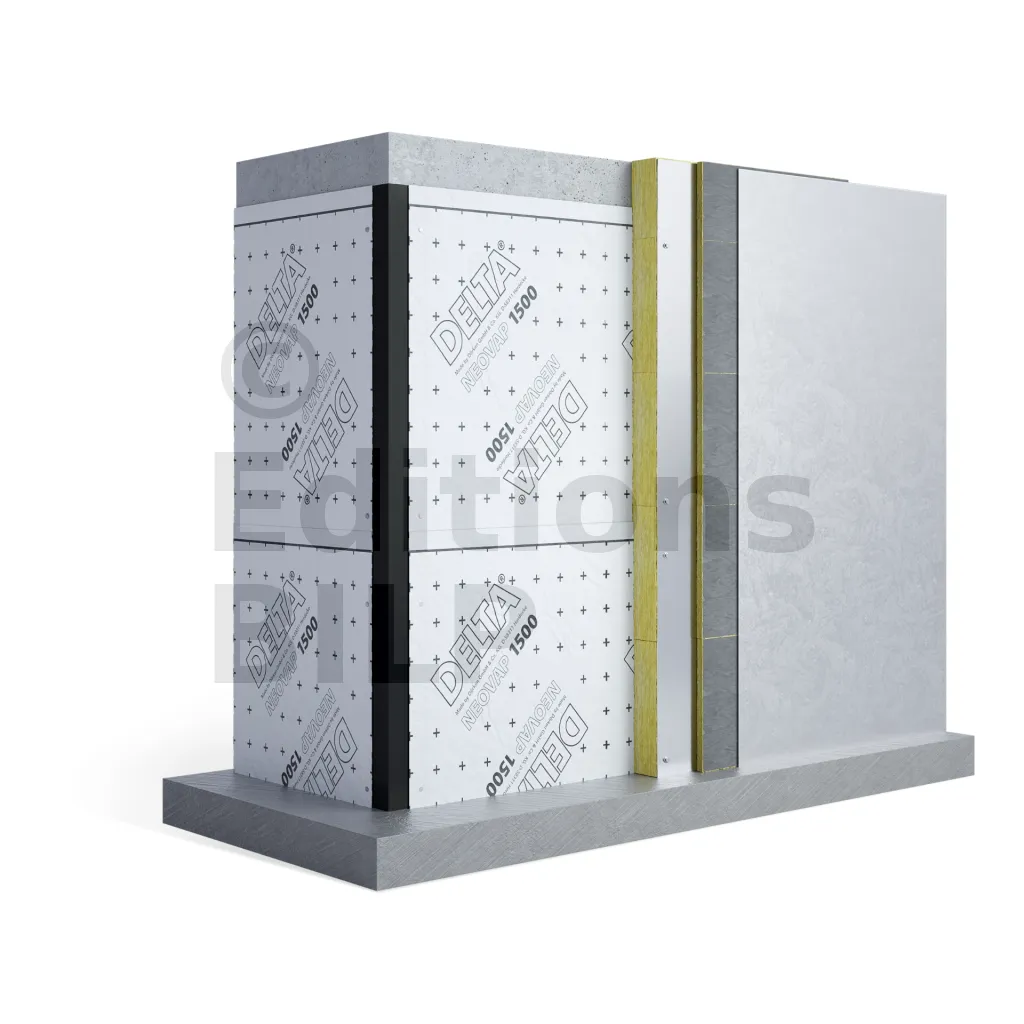- Façades non ventilées (paroi béton + pare-vapeur + isolant thermique en laine minérale + revêtements de façade isolants).