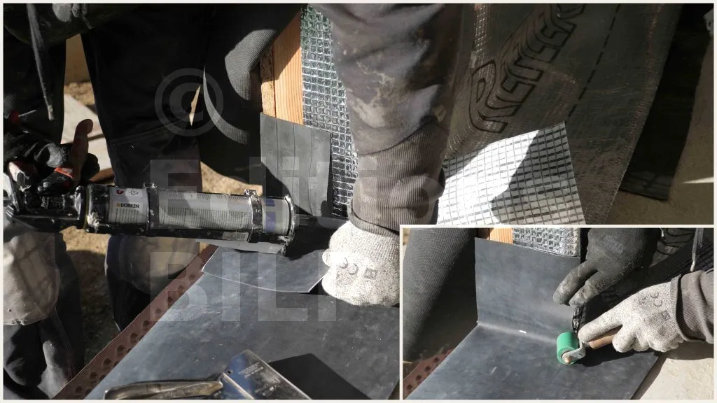 Une fois la membrane positionnée, un marouflage soigneux au rouleau permet d’éliminer les bulles d’air et d’assurer une adhérence parfaite. Il est essentiel de vérifier que la membrane est bien plaquée sur toute sa surface et qu’elle ne présente pas de plis susceptibles de compromettre son efficacité.