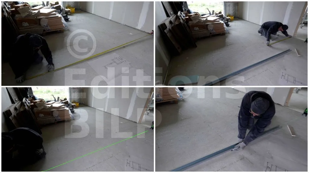 Avant de commencer les travaux, il faut vérifier l’état de la dalle sur laquelle la structure du mur va être posée. Elle doit être plane, il faut faire des ajustement si nécessaire.