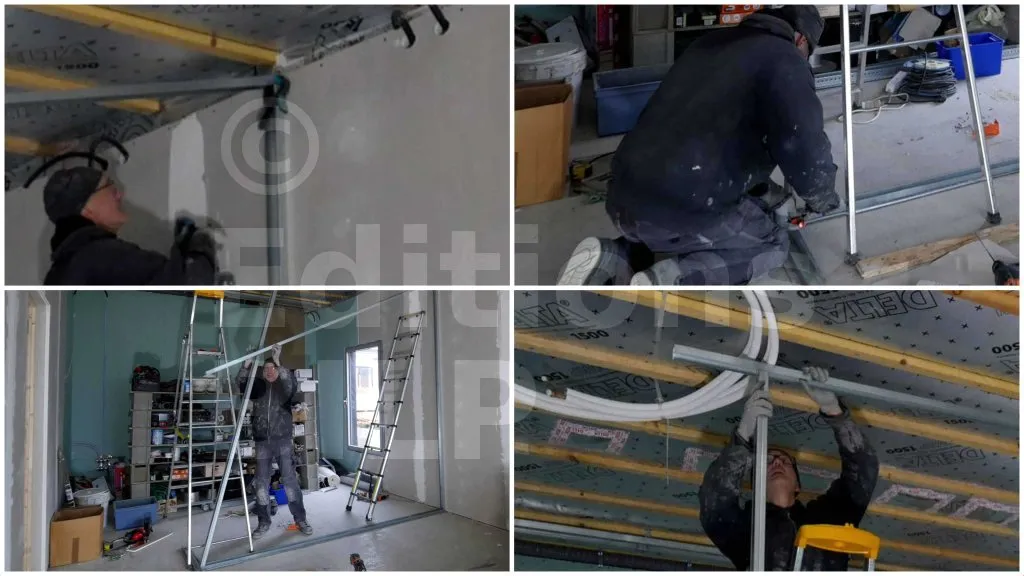 Sur ce chantier, il y a plusieurs endroit ou nous avons mis en place des mur de séparation en plaque de plâtre sur des structures métalliques. Cependant, c’est sur cette partie encadrée que nous allons exposer dans cet article. En effet, le mur sur cette partie nous n’allons pas seulement créer un simple mur mais nous allons également créer un dégagement et des retours d’angles.