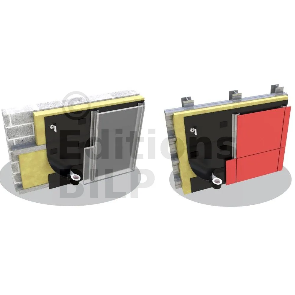 - Si fixation définitive, elle est assurée par apposition d’un profilé verticale de maintien du pare-pluie avec un entraxe maxi = 645mm.