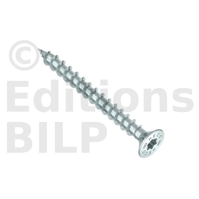 HECO-TOPIX-plus, vis de pose, tête fraisée à poches de fraisage, HECO-Drive, filet total variable, zingué blanc, A3K - Réf. 60781