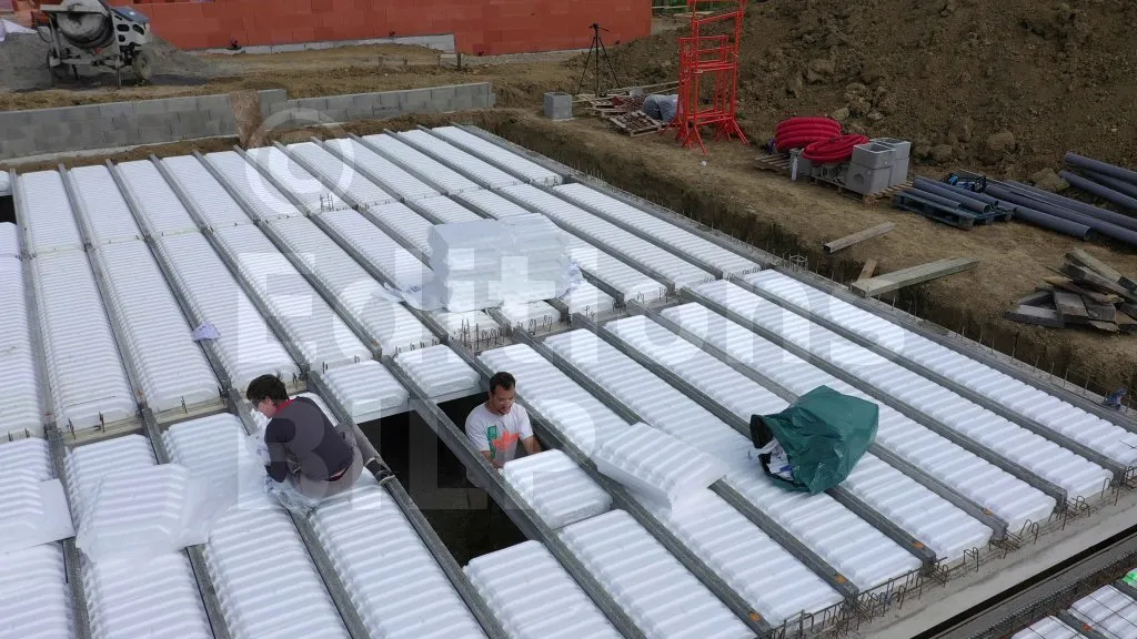 Les hourdis sont dotés d’un système d’emboîtement mâle et femelle. Pour mettre en place les hourdis au milieu des poutrelles, il faut les positionner selon la technique de pose, puis les pousser contre les hourdis situés aux extrémités des poutrelles afin de réaliser l’emboîtement.