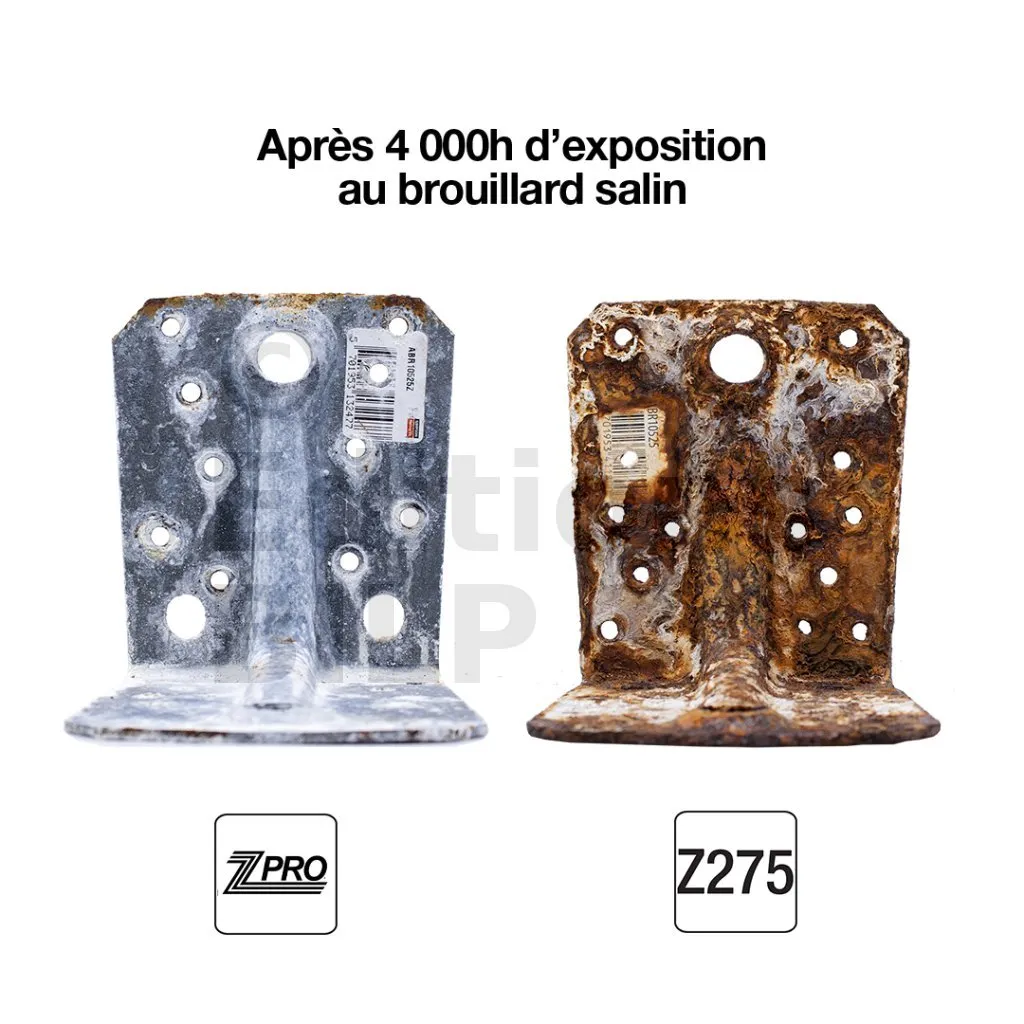 L’alliage innovant ZPRO®, composé de Zinc et de Magnésium, offre une résistance remarquable à la corrosion. Lorsqu’il est utilisé comme revêtement sur les connecteurs structurels ou les vis, il crée un mécanisme d’autoprotection contre la corrosion, assurant une durabilité à long terme, même en extérieur.