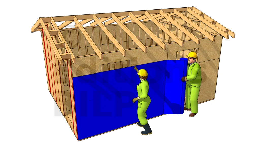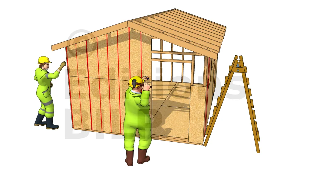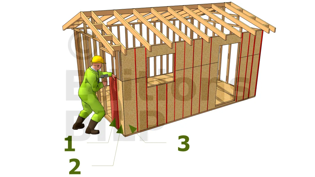 Continuer à installer les autres panneaux comme précédemment sur la face suivante. Bien délimiter la partie à enlever dans les ouvertures. Assurez-vous que le panneau chevauche le premier panneau à partir du coin. Toujours vérifier l’aplomb et découper les parties excédentaires.