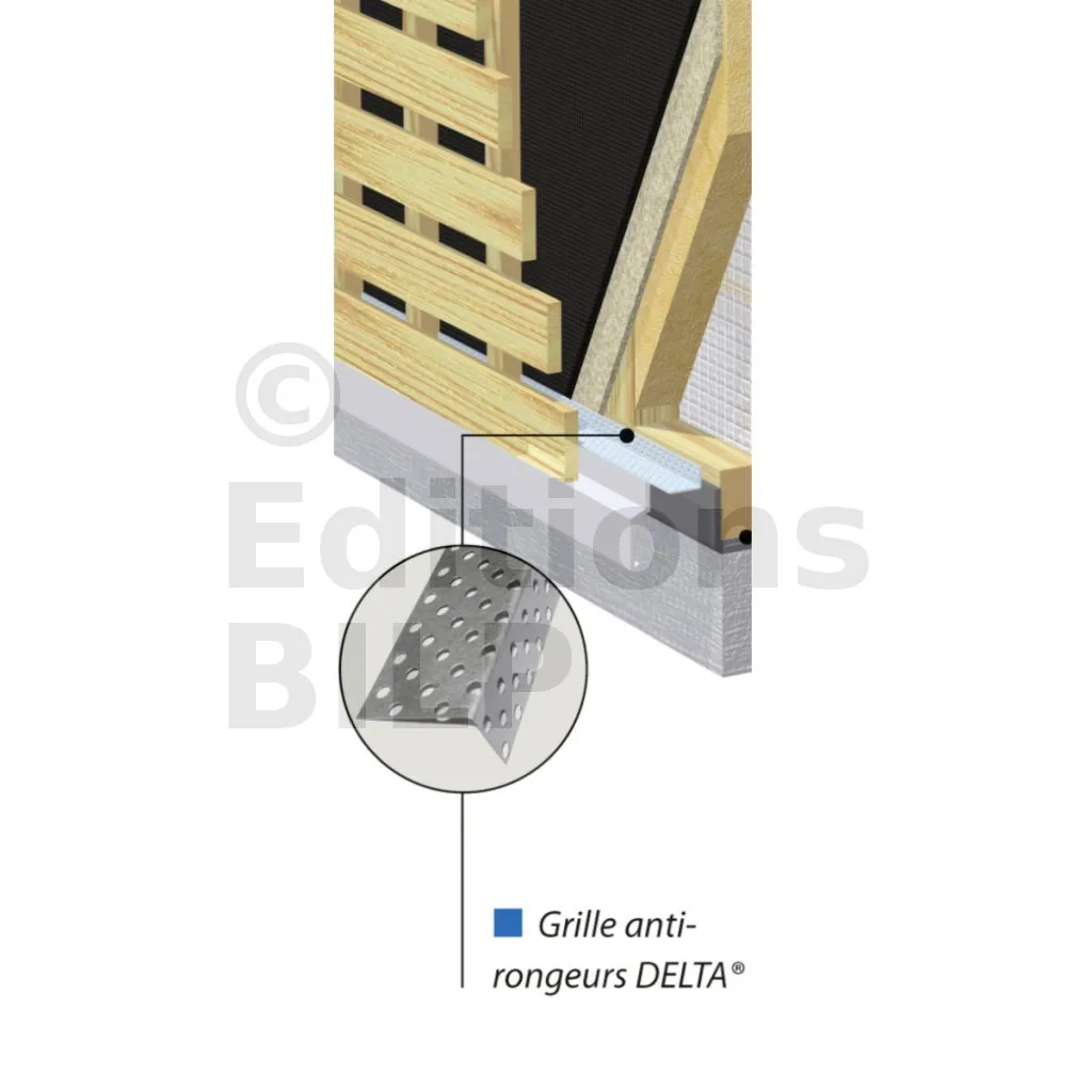 - Assure l’entrée d’air au niveau du raccord bas d’un parement extérieur de construction à ossature bois.