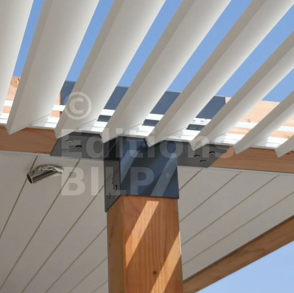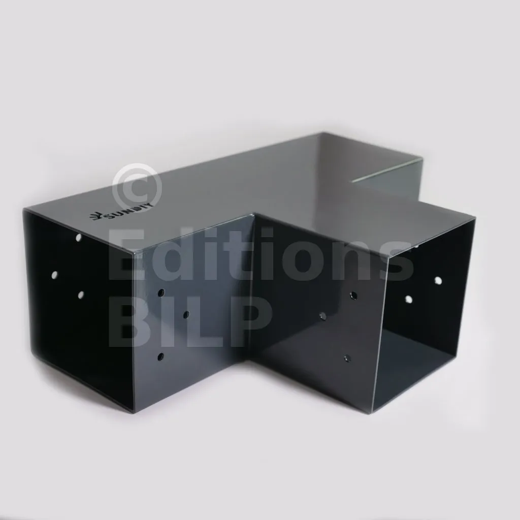 Il permet également la connexion d’une longue poutre de 90x90mm à un poteau intermédiaire de 90x90mm.