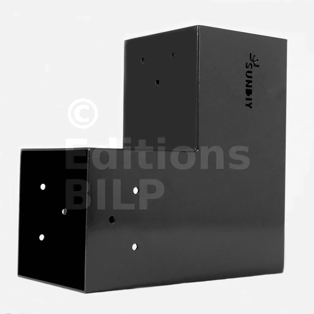 Il est utilisé dans un angle extérieur. Ce connecteur va permettre de raccorder une grosse poutre 120x120mm perpendiculairement à une autre poutre ou à un poteau vertical 120x120mm.