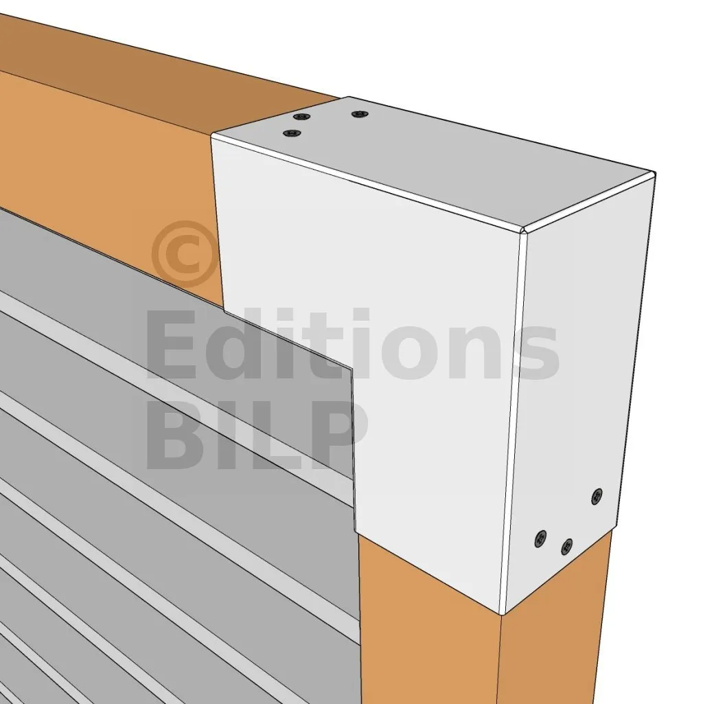 Il est utilisé dans un angle extérieur. Ce connecteur va permettre de raccorder une poutre 90x90mm perpendiculairement à une autre poutre ou à un poteau vertical 90x90mm.