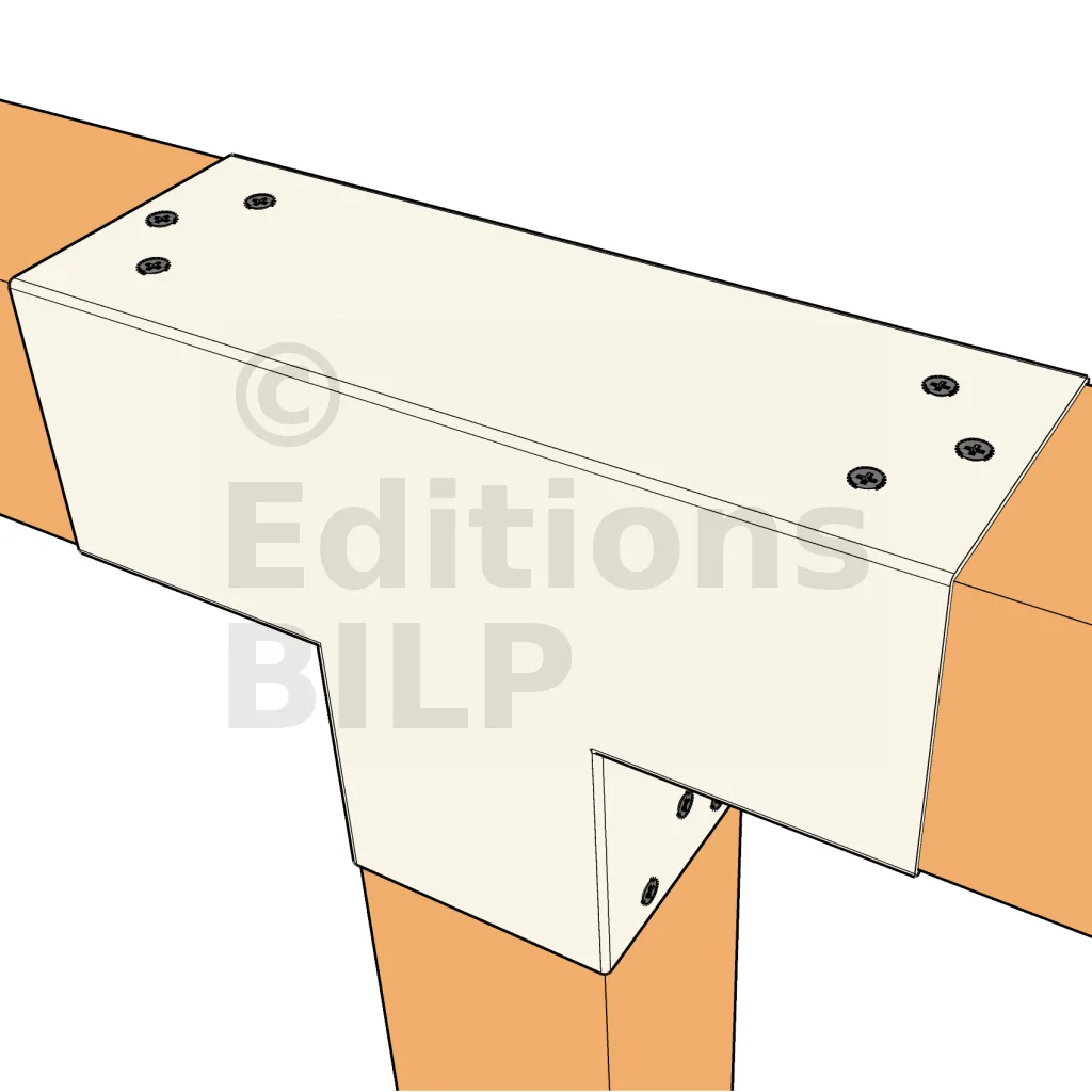 Il sert à raccorder une poutre de 90x90mm perpendiculairement à une autre poutre de 90x90mm, SANS être soutenu par un poteau vertical.