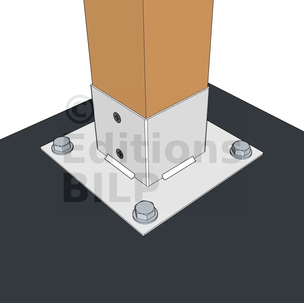 Il permet la fixation des poteaux sur une dalle ou un plot en béton.