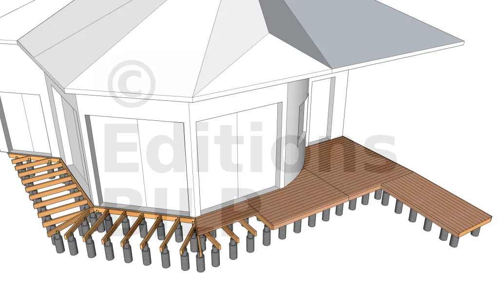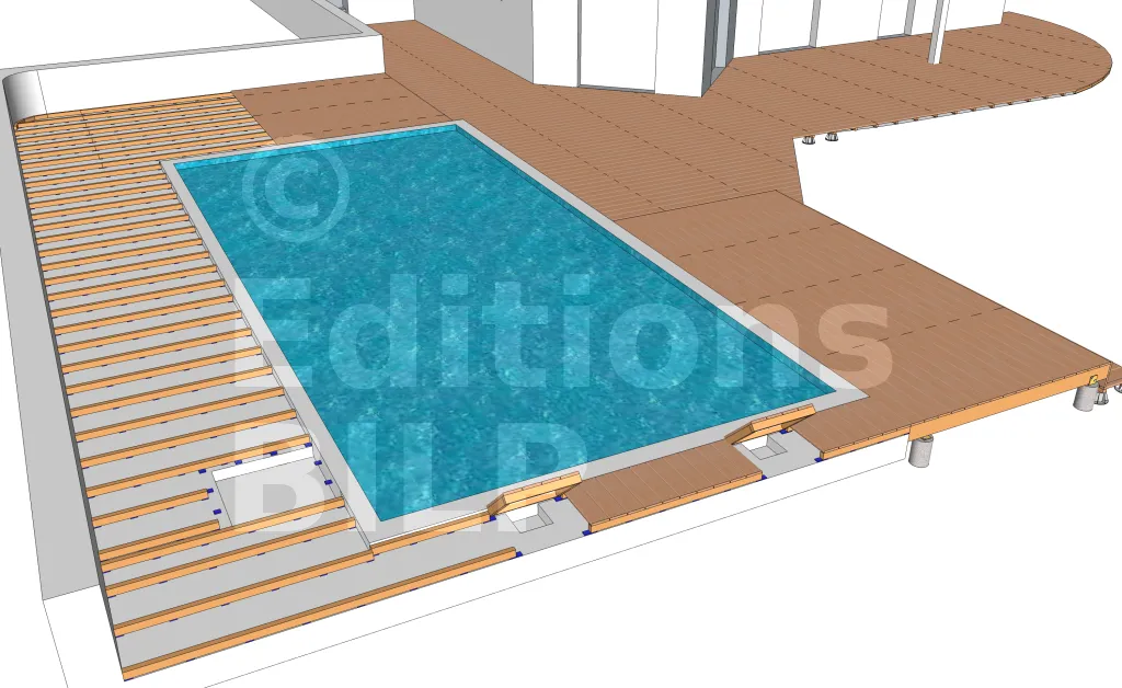 Une terrasse en bois, ce n’est pas qu’un platelage rectangulaire. Il existe des dispositions spéciales et des équipements à réaliser :