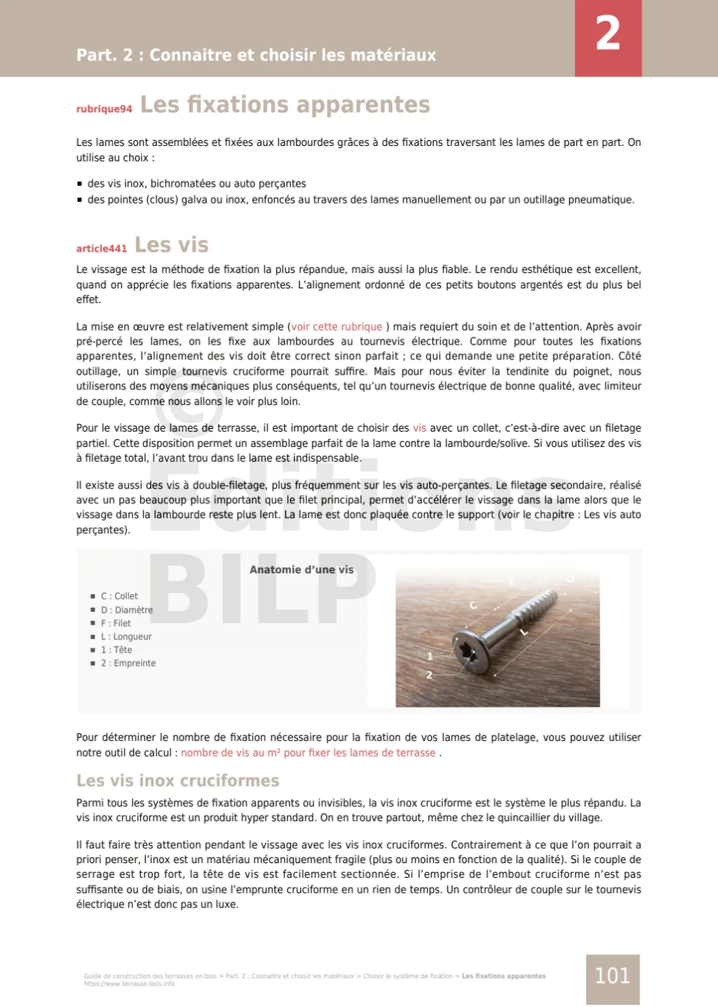 - vous ferez les bons choix de matériaux, les lames de terrasse, les lambourdes, les fixations, etc.