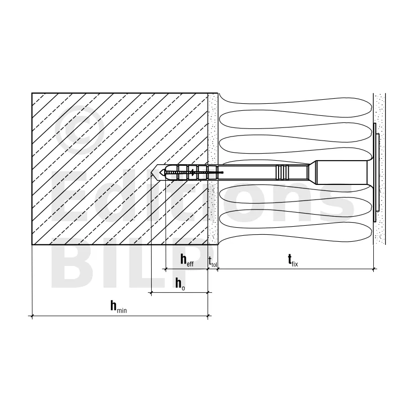 Béton cellulaire (AAC) (substrat de type E) - Profondeur d’ancrage (hef)Support de type A, B, C, D : 25mm,