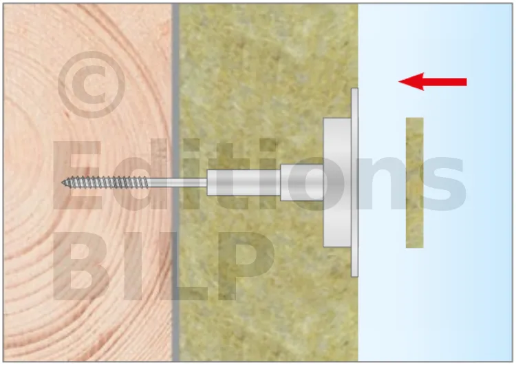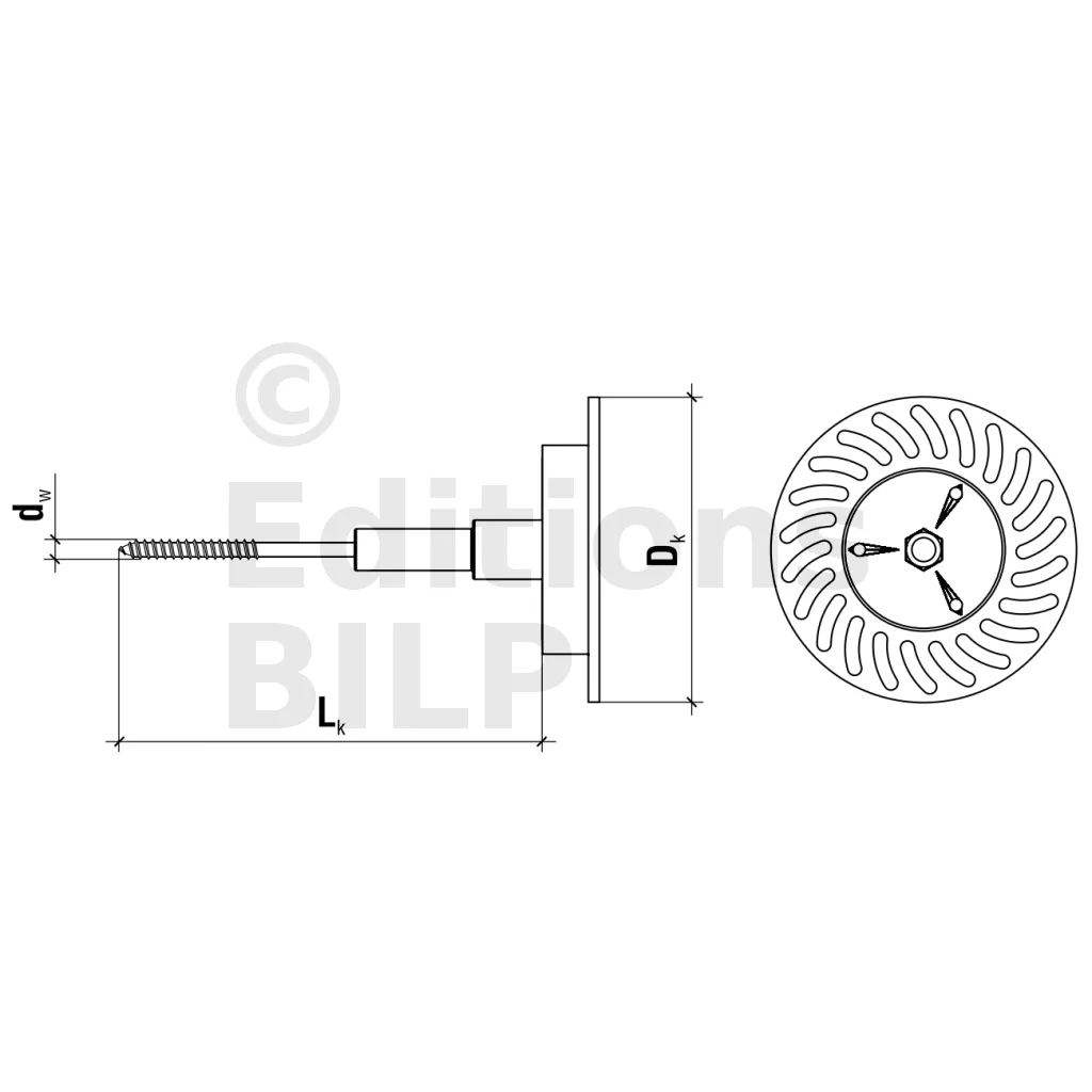 Cheville d’isolation à visser pour fixer la laine minérale sur le SUPPORT EN BOIS - diamètre 6mm - Réf. DRIVE-W-06180(50)
