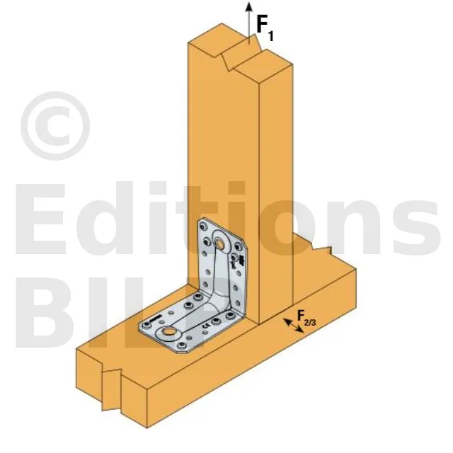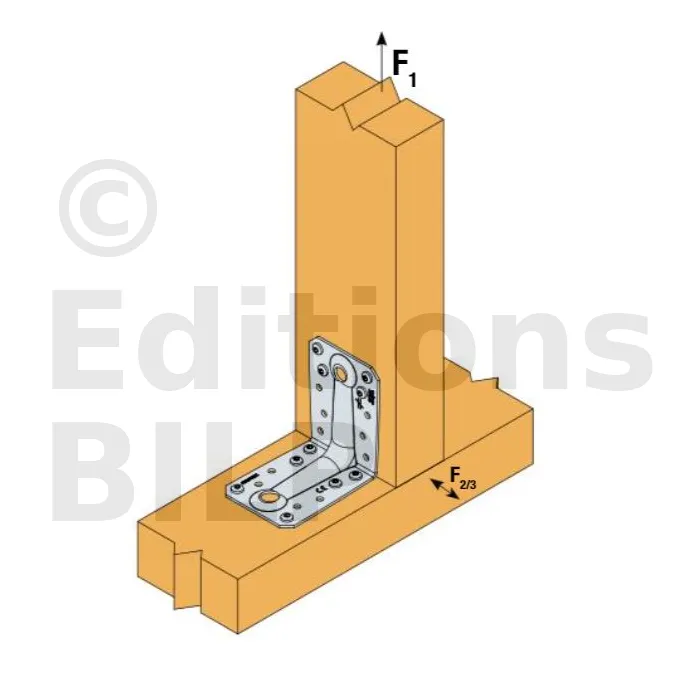 Seuls les efforts F1, F2 et F3 pour des assemblages à 2 équerres sont présents sur cette fiche. Pour plus d’information, consulter l’ETE de Simpson Strong-Tie.
