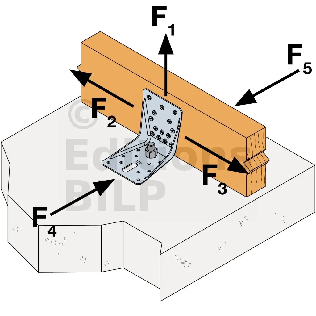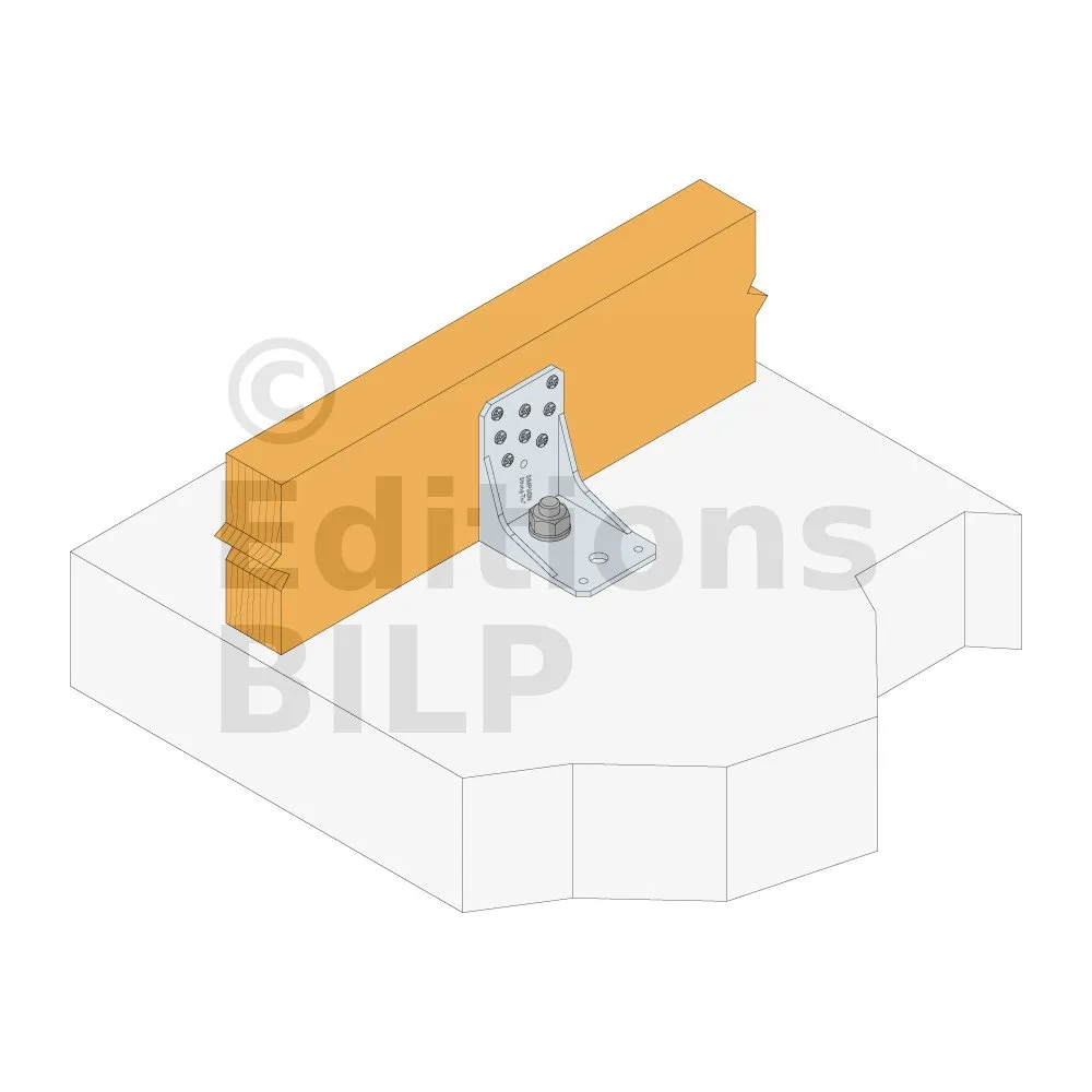 ** Se référer à la gamme d’ancrages Simpson Strong Tie type WA, BOAXII, AT-HP ou SET-XP en fonction du type de béton, des entraxes et distances aux bords.