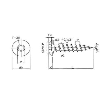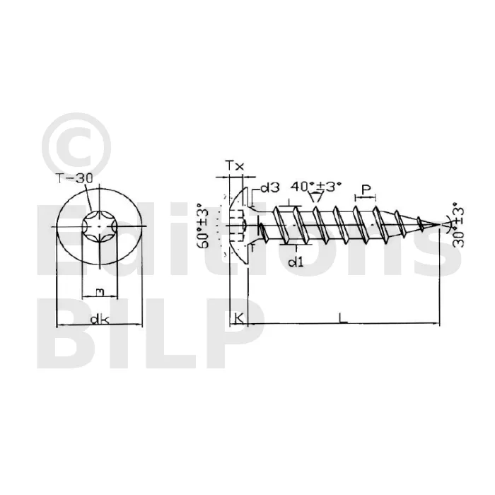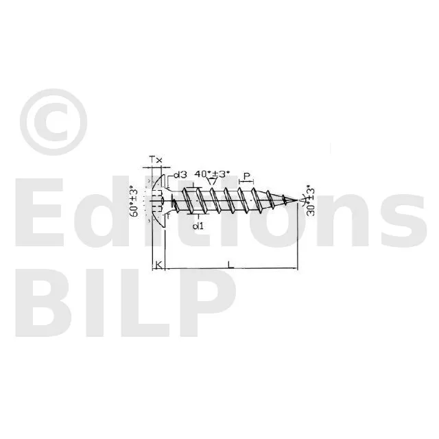 Vis pour bois aggloméré penture - empreinte TX - totalement filetée - inox A2