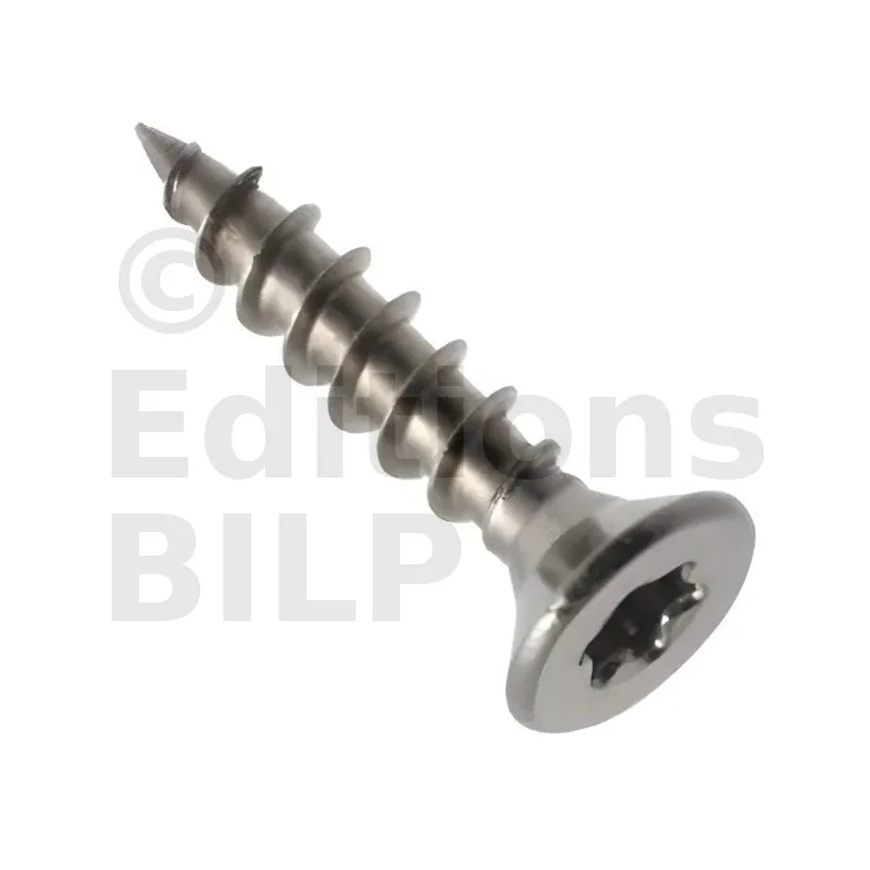 Vis à bois à tête fraisée - empreinte TX - INOX - filet total
