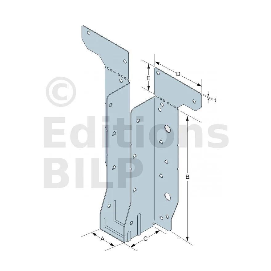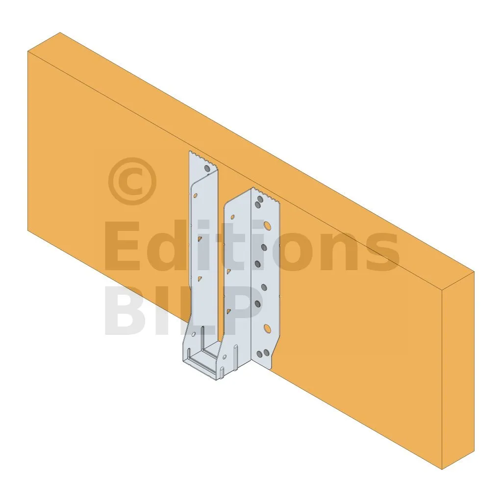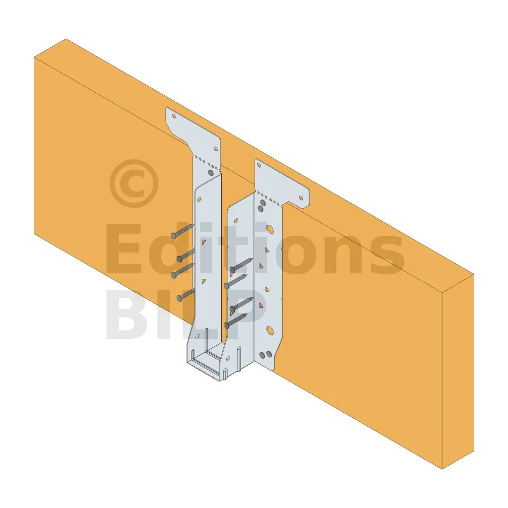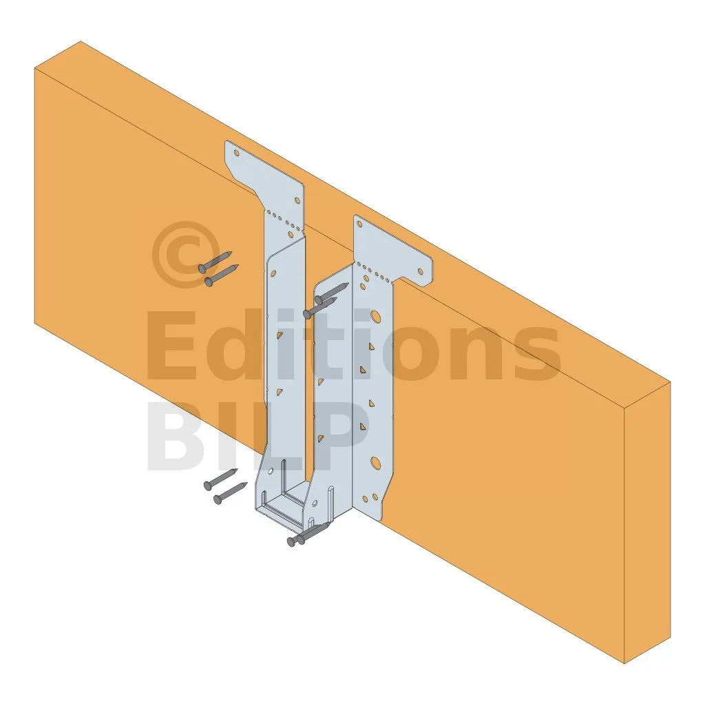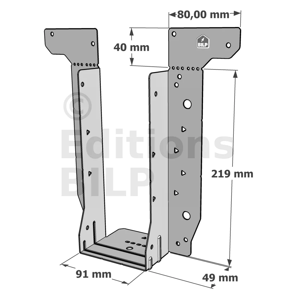 - Étrier fourni avec ses brides supérieures droites, pliables sur chantier afin de s’adapter à toutes les hauteurs de solives,