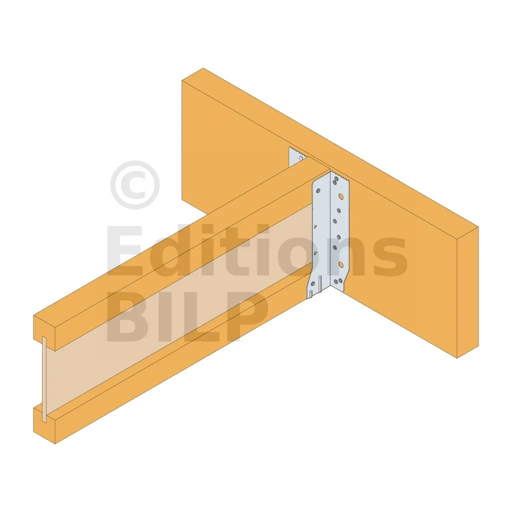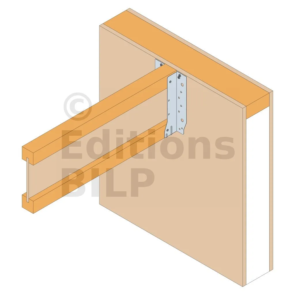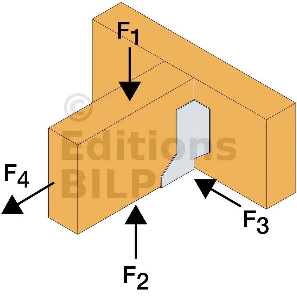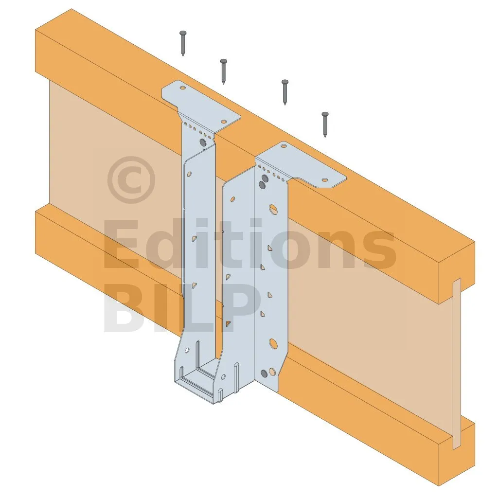 - Cette languette peut être pliée vers le haut pour les cas où le bas de solive n’est pas aligné sur le support.