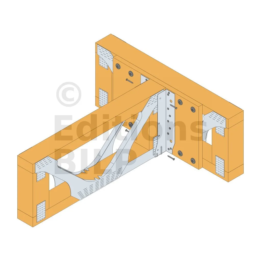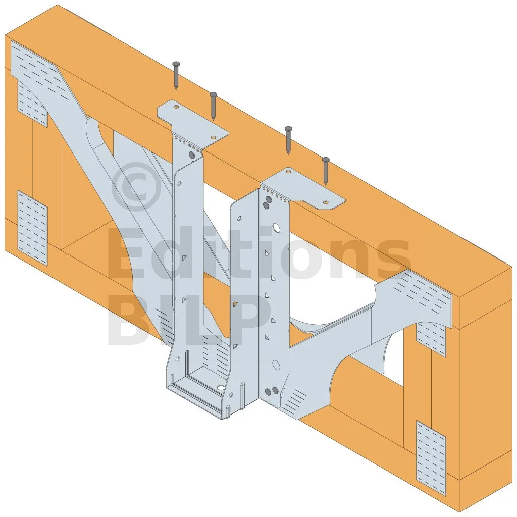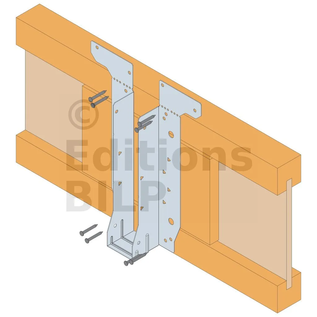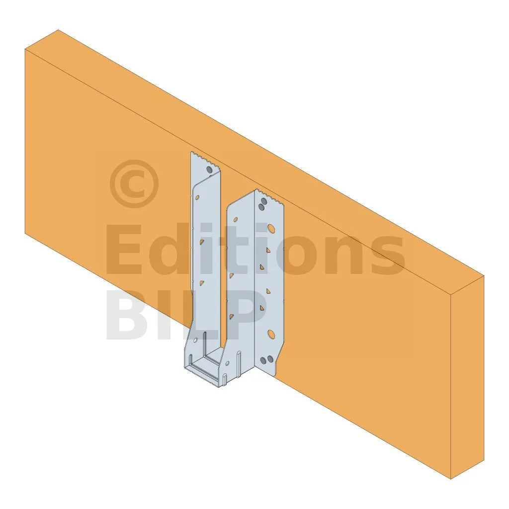 - Cette languette peut être pliée vers le haut pour les cas où le bas de solive n’est pas aligné sur le support.