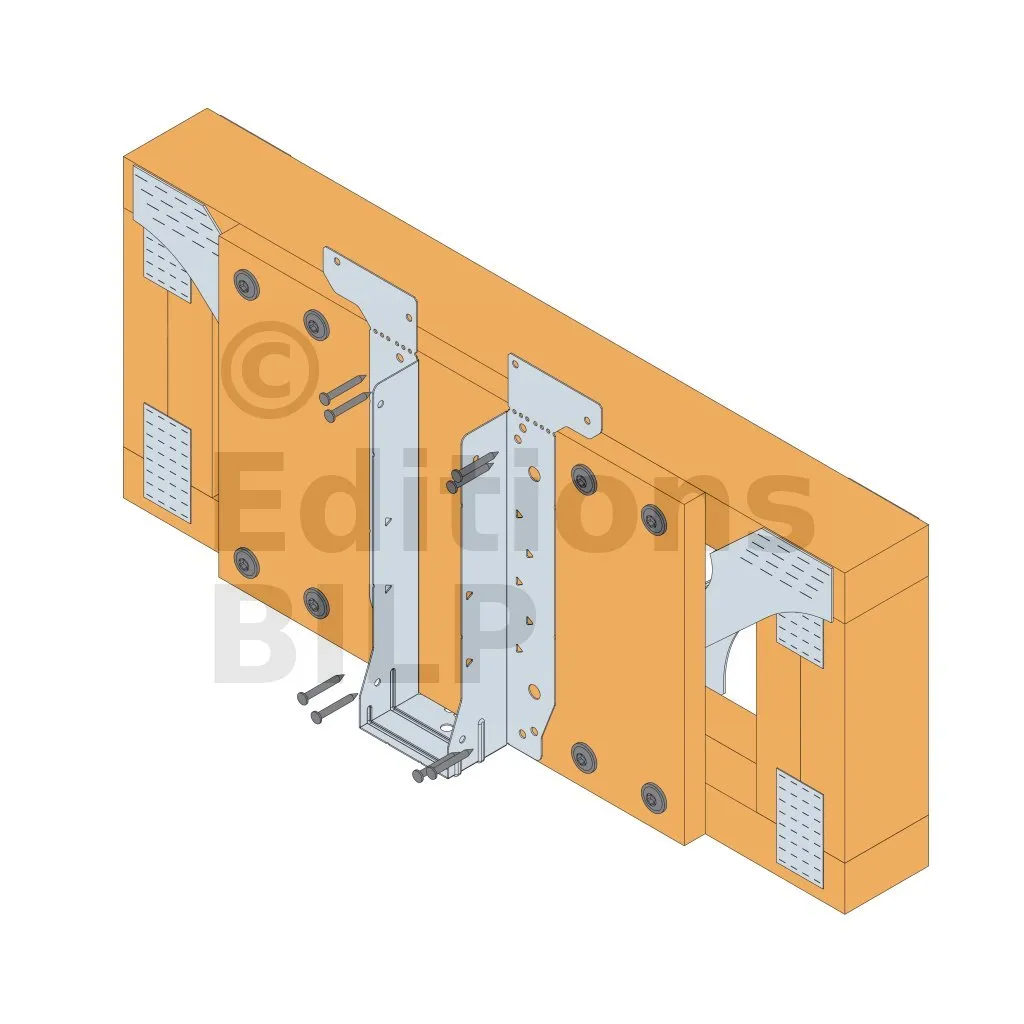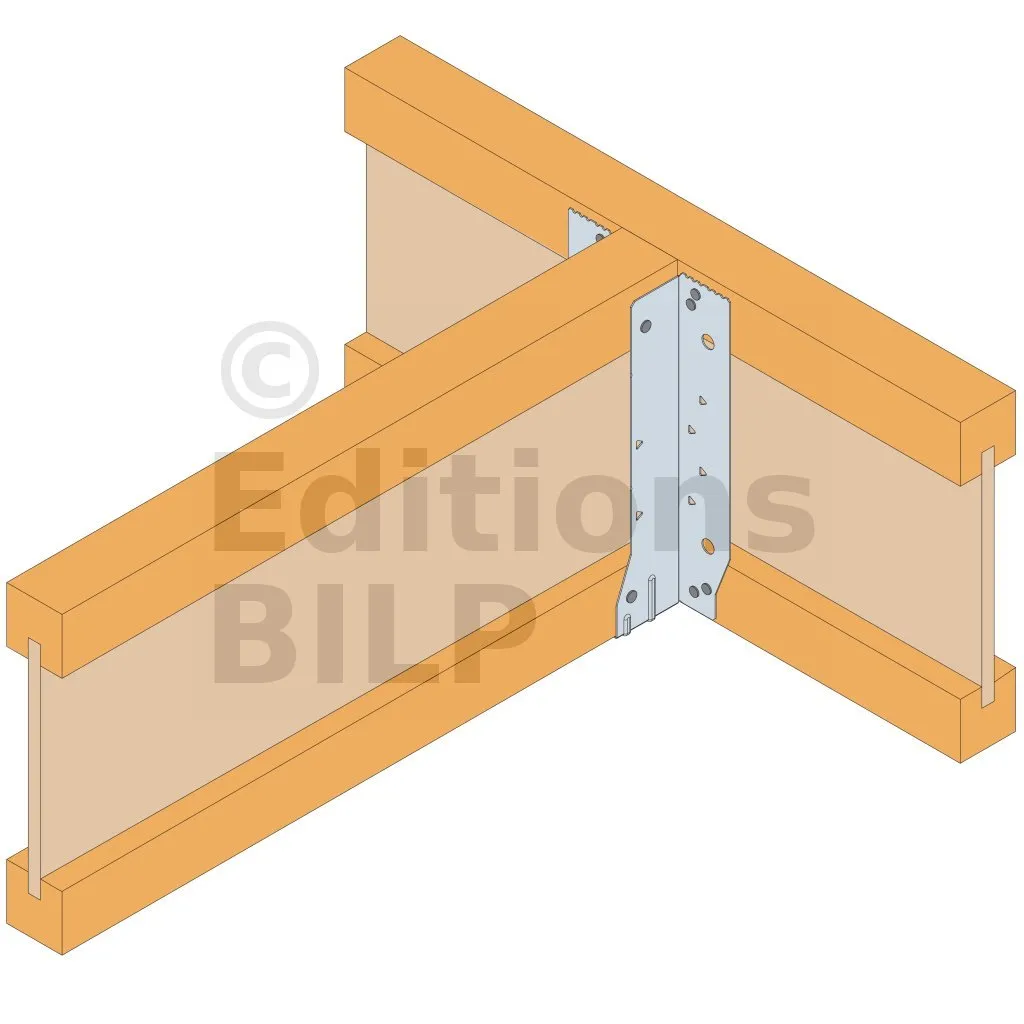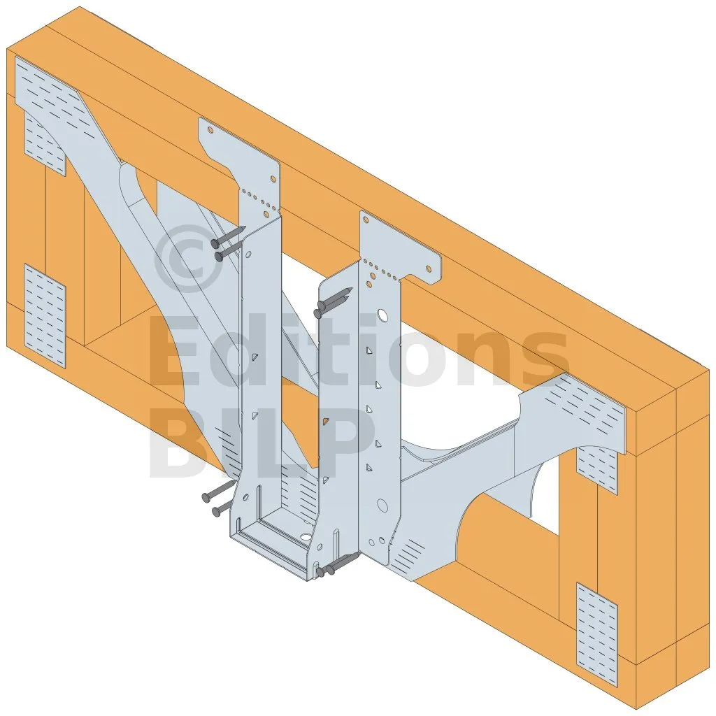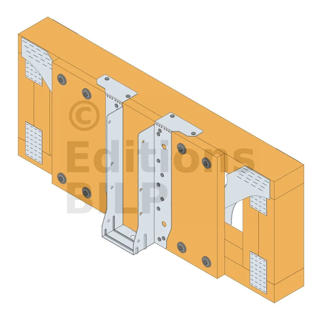 - Cette languette peut être pliée vers le haut pour les cas où le bas de solive n’est pas aligné sur le support.
