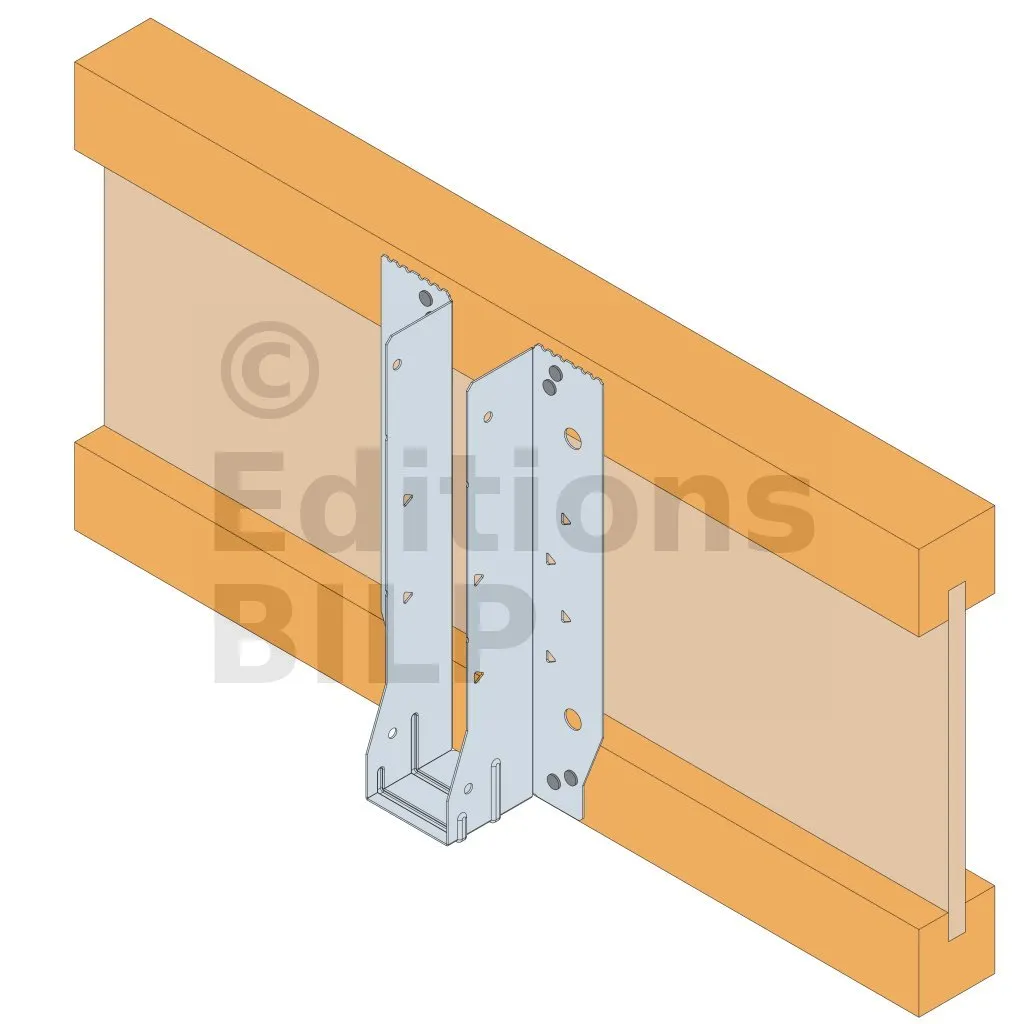 - Pour une hauteur d’EWH > 300 mm, il est nécessaire d’installer un bloc de renfort sur la face avant de la poutre en I porteuse pour que les valeurs publiées s’appliquent. L’installation du bloc de renfort doit être conforme aux spécifications des fabricants de poutres en I.