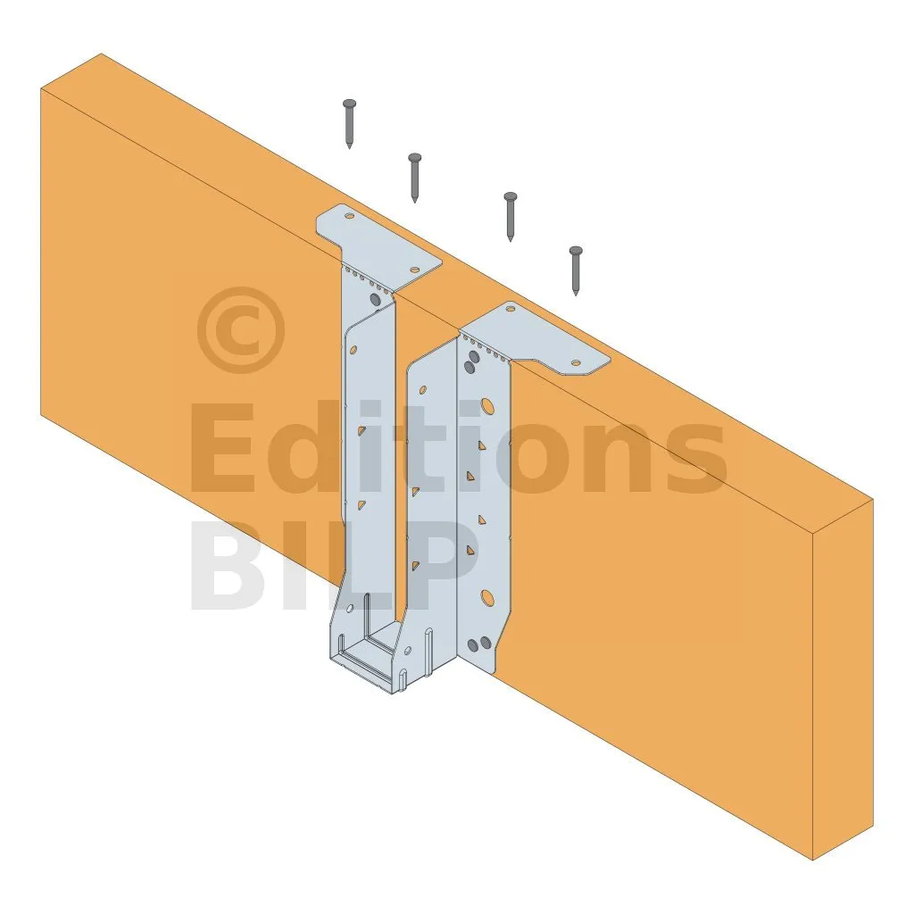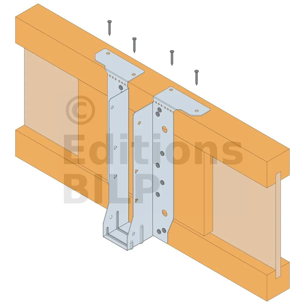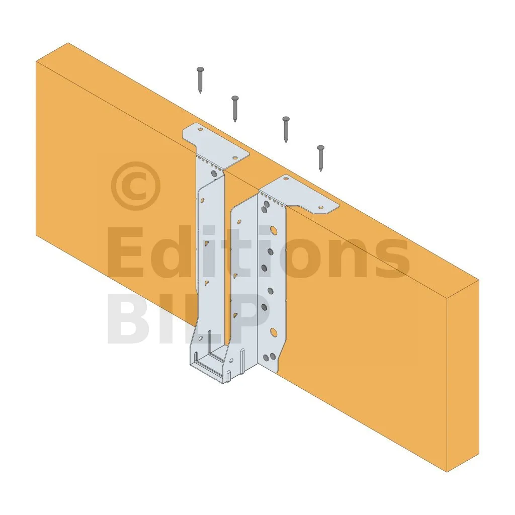3. Positionner l’étrier EWH sur la face de la solive porteuse, en s’assurant que la languette située au niveau de l’assise soit bien serrée contre le dessous de la membrure inférieure de cette porteuse,