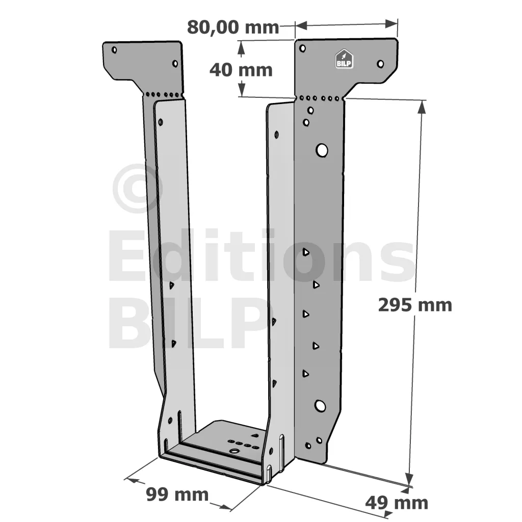 - Étrier fourni avec ses brides supérieures droites, pliables sur chantier afin de s’adapter à toutes les hauteurs de solives,