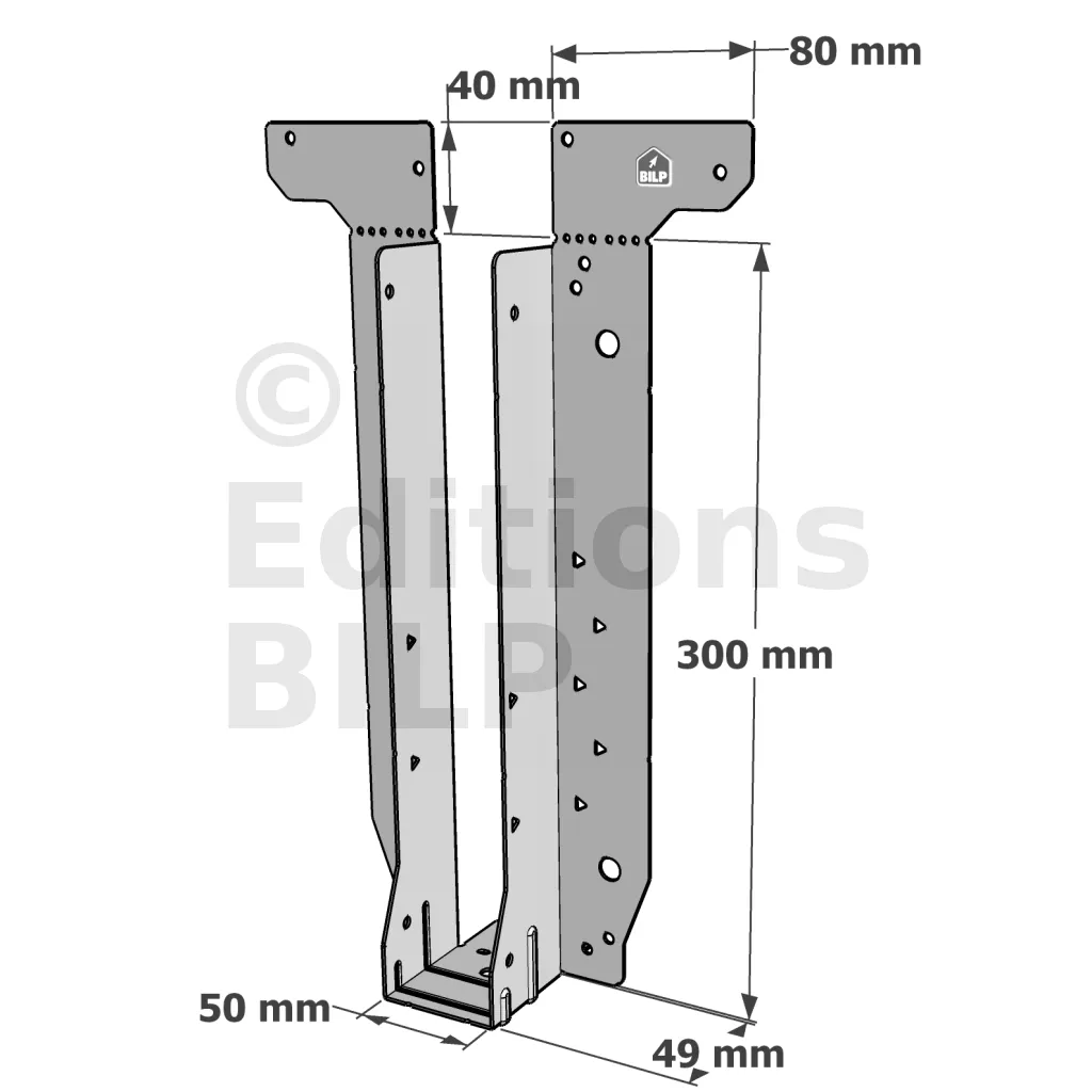 - Étrier fourni avec ses brides supérieures droites, pliables sur chantier afin de s’adapter à toutes les hauteurs de solives,