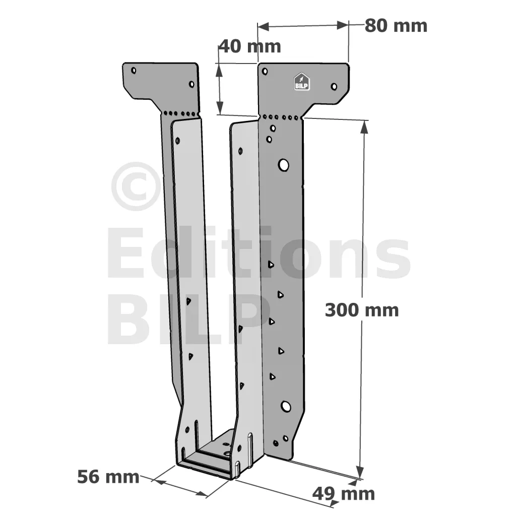 - Étrier fourni avec ses brides supérieures droites, pliables sur chantier afin de s’adapter à toutes les hauteurs de solives,
