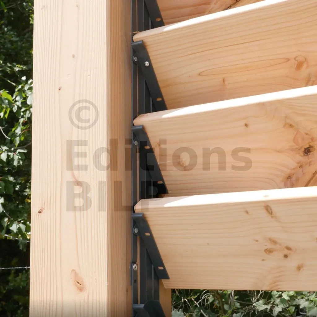 Le bois est un matériau naturel, présentant une structure hétérogène. De ce fait, nos lames peuvent présenter des variations dimensionnelles qui peuvent évoluer dans le temps. De même, de légères déformations peuvent apparaitre au fil du temps, heureusement sans que cela nuise à la fonctionnalité.