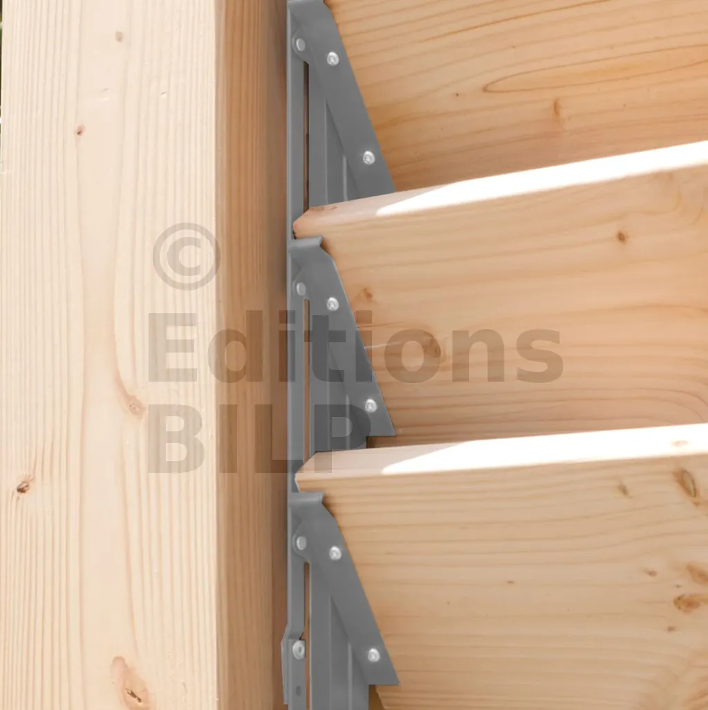 Pour les lames en ALUMINIUM, elle est facultative. Cependant, dans les régions exposées au vent, nous recommandons vivement d’opter pour cette fixation.