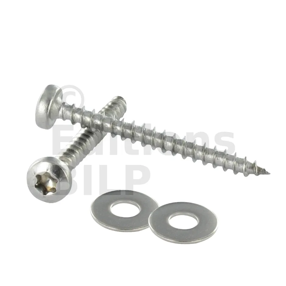 Vis bois et panneaux à tête ronde TORX - D5 x L50 + rondelle - INOX A2 - 10 unités - Réf. SND-FXT-BOIS-5-50_10