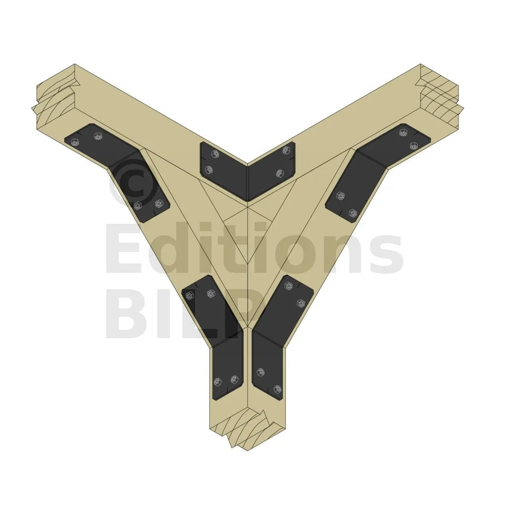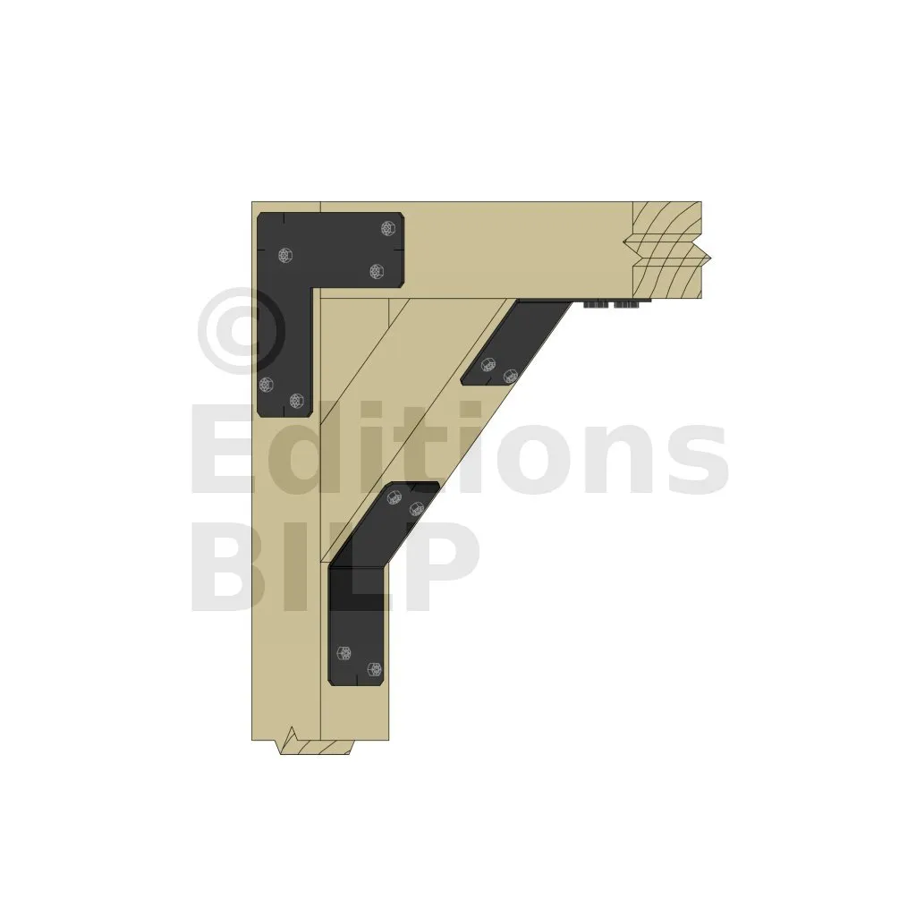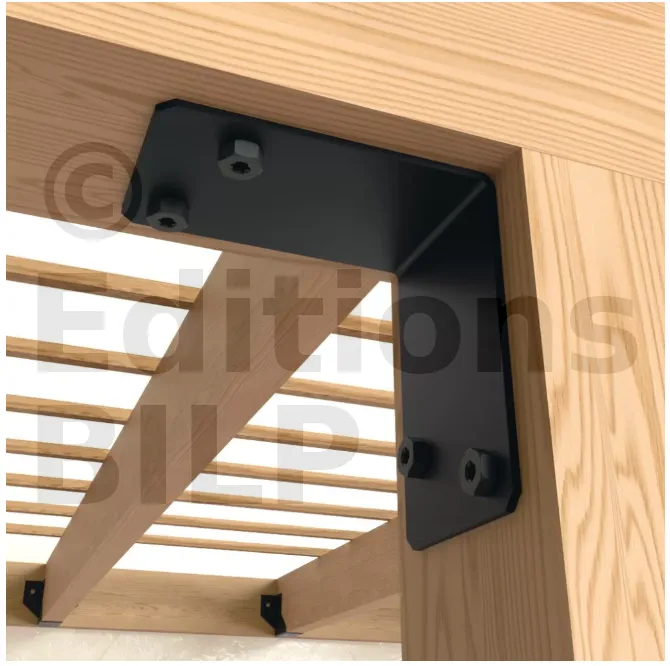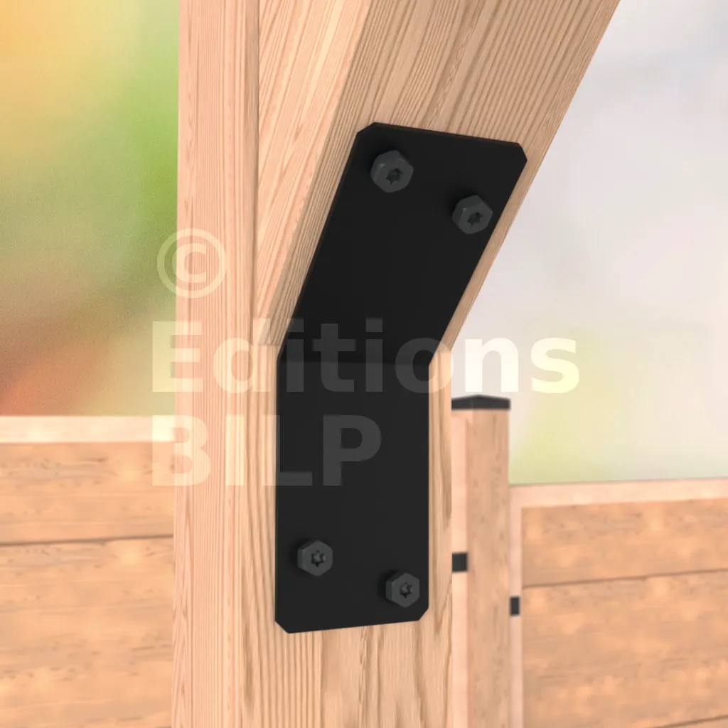 Équerre pour les assemblages de contreventements ou autres connexions à 135° présents dans les constructions légères de jardin telles que les pergolas.