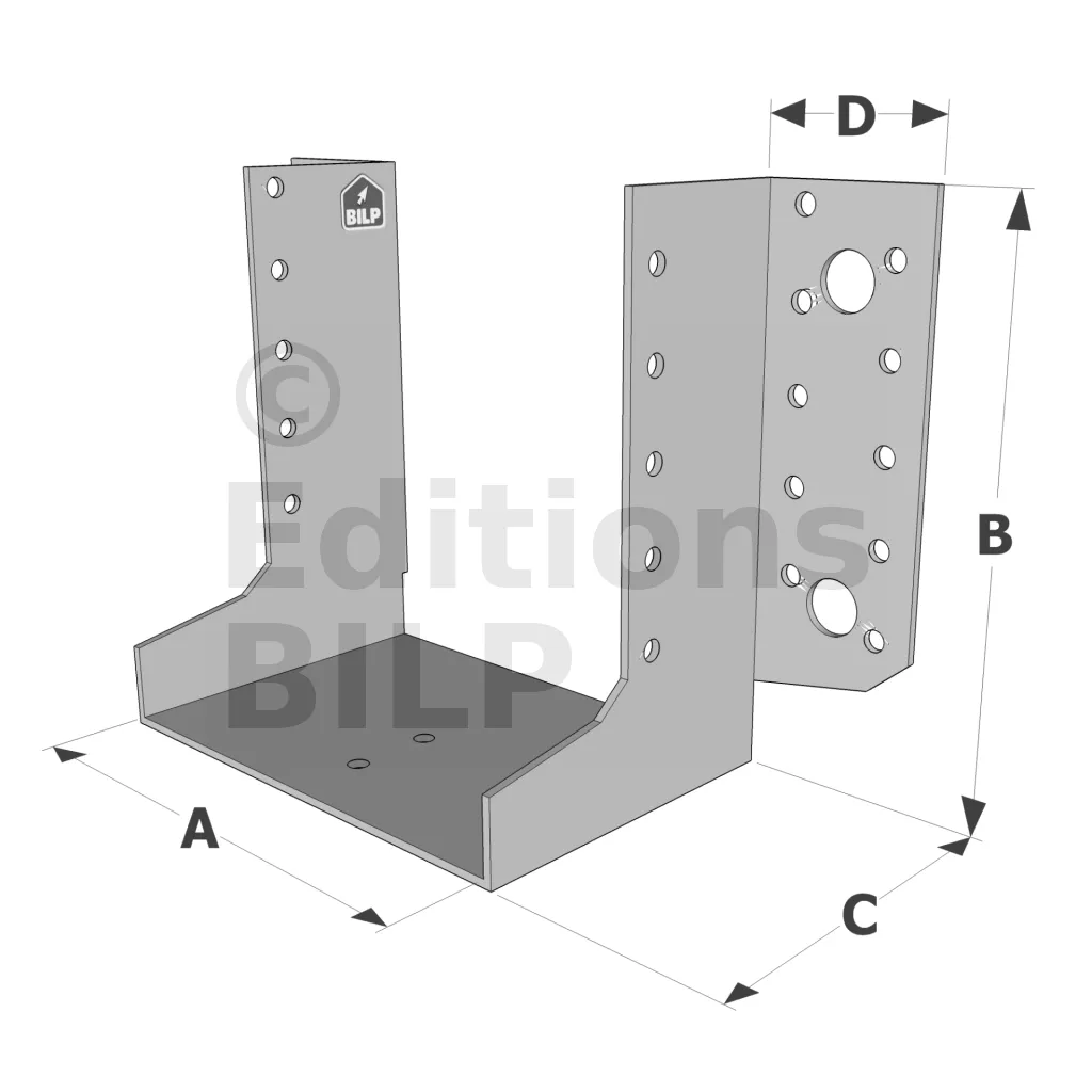 - Polyvalence : Disponibles en différentes tailles et profondeurs, les sabots SAE s’adaptent à une variété d’applications, des charpentes aux poteaux, en passant par les angles et les fermettes.