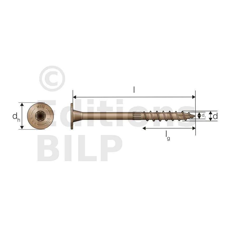 Vis à bois de construction EXTERIEUR SDWS - Diamètre 8mm