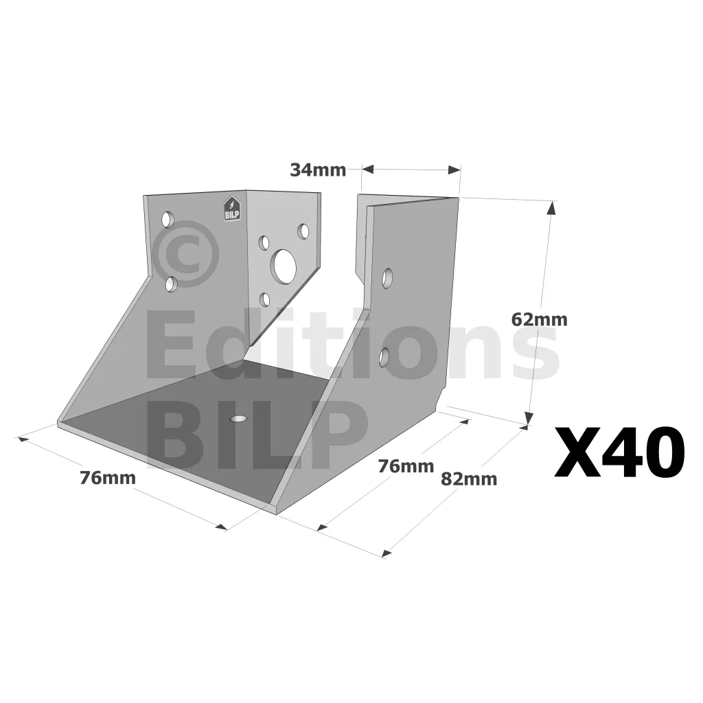 On admet une tolérance de 2 mm maximum entre l‘épaisseur du bois et la largeur du sabot. Exemple : un sabot plié à 76 mm peut porter une épaisseur de bois de 74 mm.