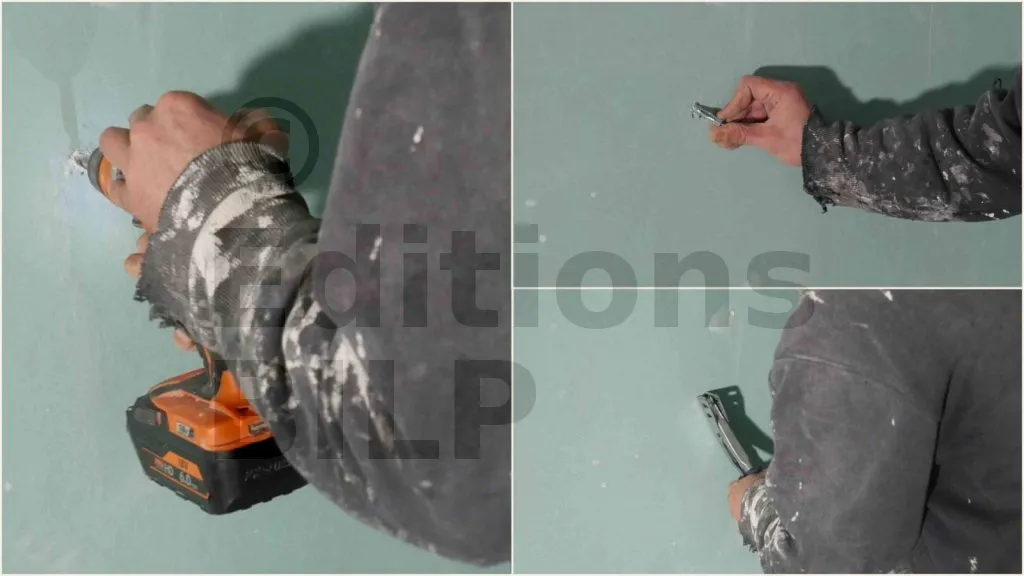 Les vis sont largement utilisées pour leur capacité à offrir une grande force de serrage et une excellente résistance à l’arrachement. Les vis à bois autotaraudeuses sont recommandées, particulièrement celles avec une tête large pour une meilleure répartition de la charge sur le bois.