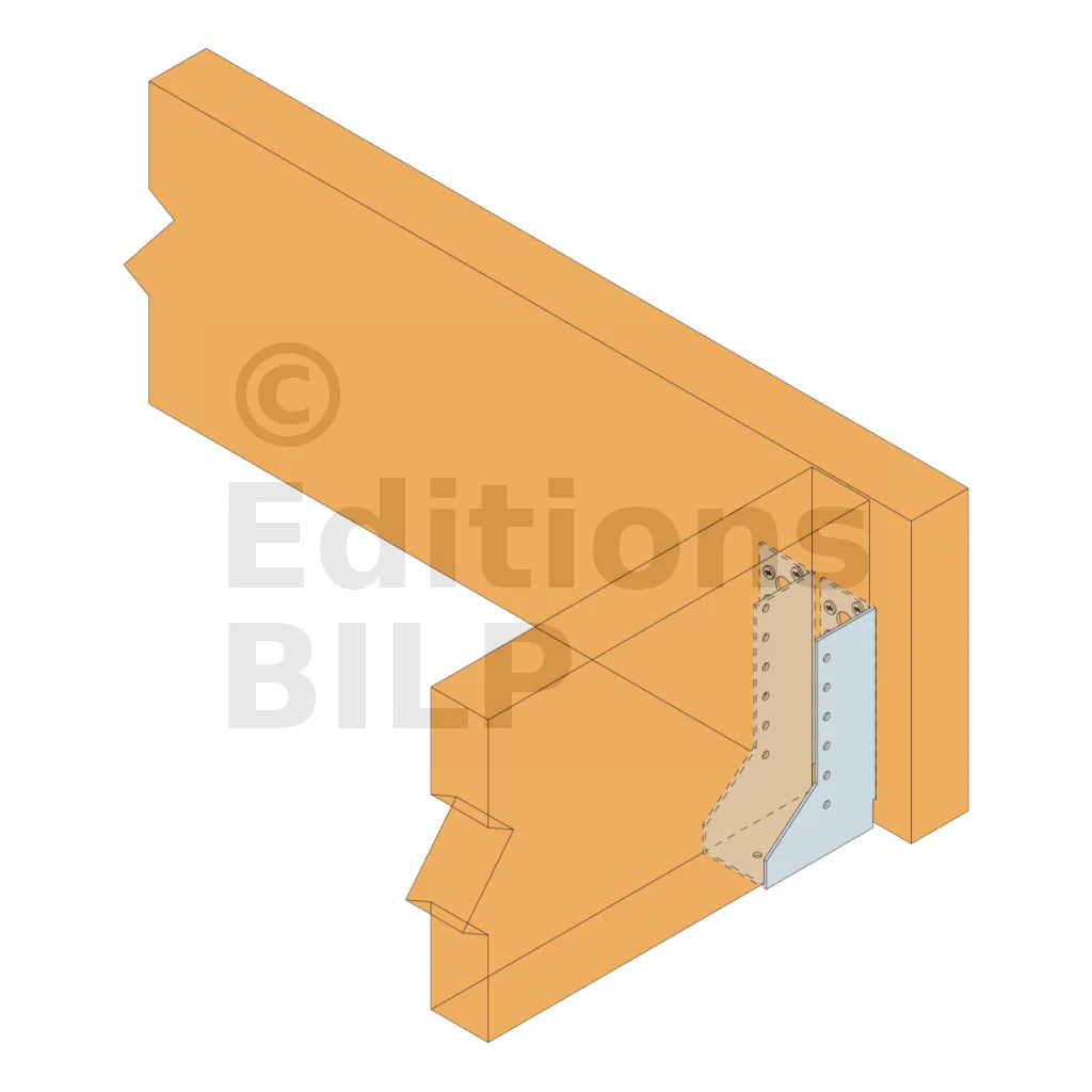 Les sabots à ailes repliées JHR/L, versions gauche et droite, sont conçus pour une fixation optimale des solives dans les angles, offrant la même performance que les SAE.