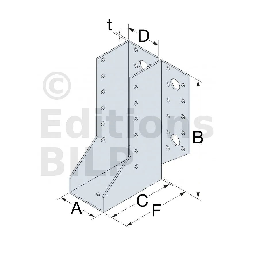 - Utilisés pour fixer les arêtiers et les chevrons, les sabots à ailes repliées assurent une connexion solide et durable.