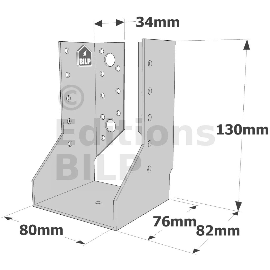 - Robustesse et discrétion : Grâce à leur conception en acier galvanisé, ces sabots sont robustes et résistent aux conditions climatiques difficiles. Les ailes intérieures permettent une intégration discrète, préservant l’esthétique de la structure.