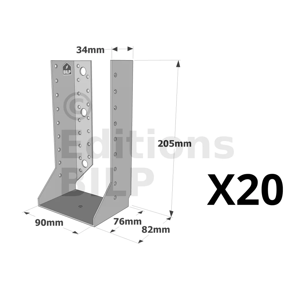 - Robustesse et discrétion : Grâce à leur conception en acier galvanisé, ces sabots sont robustes et résistent aux conditions climatiques difficiles. Les ailes intérieures permettent une intégration discrète, préservant l’esthétique de la structure.
