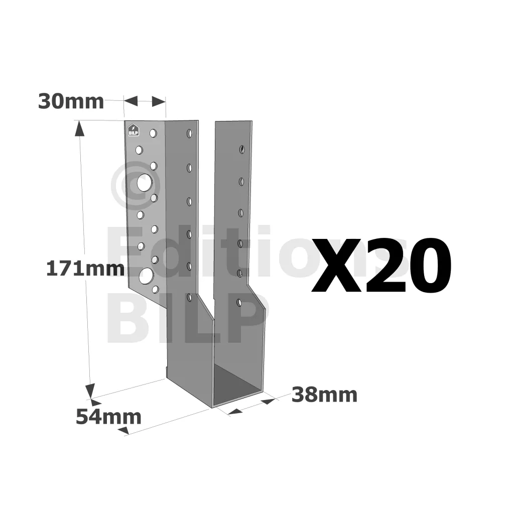 Sabots à ailes extérieures, gamme SBE ECONOMIQUE (épaisseur 1,5mm, profondeur 55mm) - Réf. SBE38/171_20