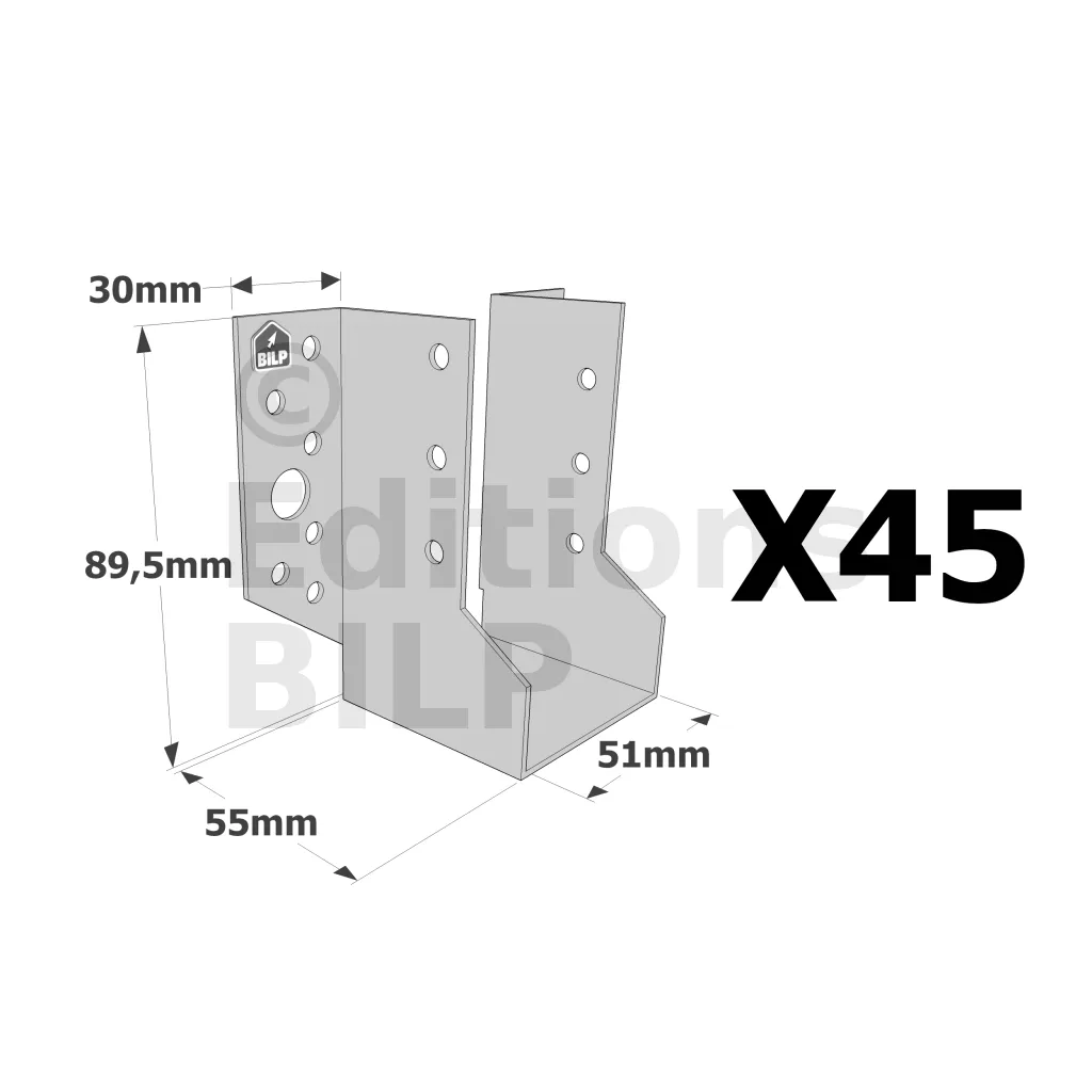 Sabots à ailes extérieures, gamme SBE ECONOMIQUE (épaisseur 1,5mm, profondeur 55mm) - Réf. SBE51/90_45