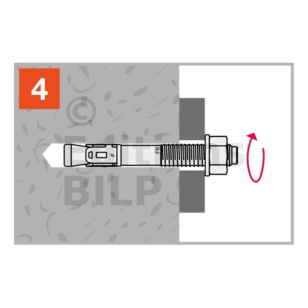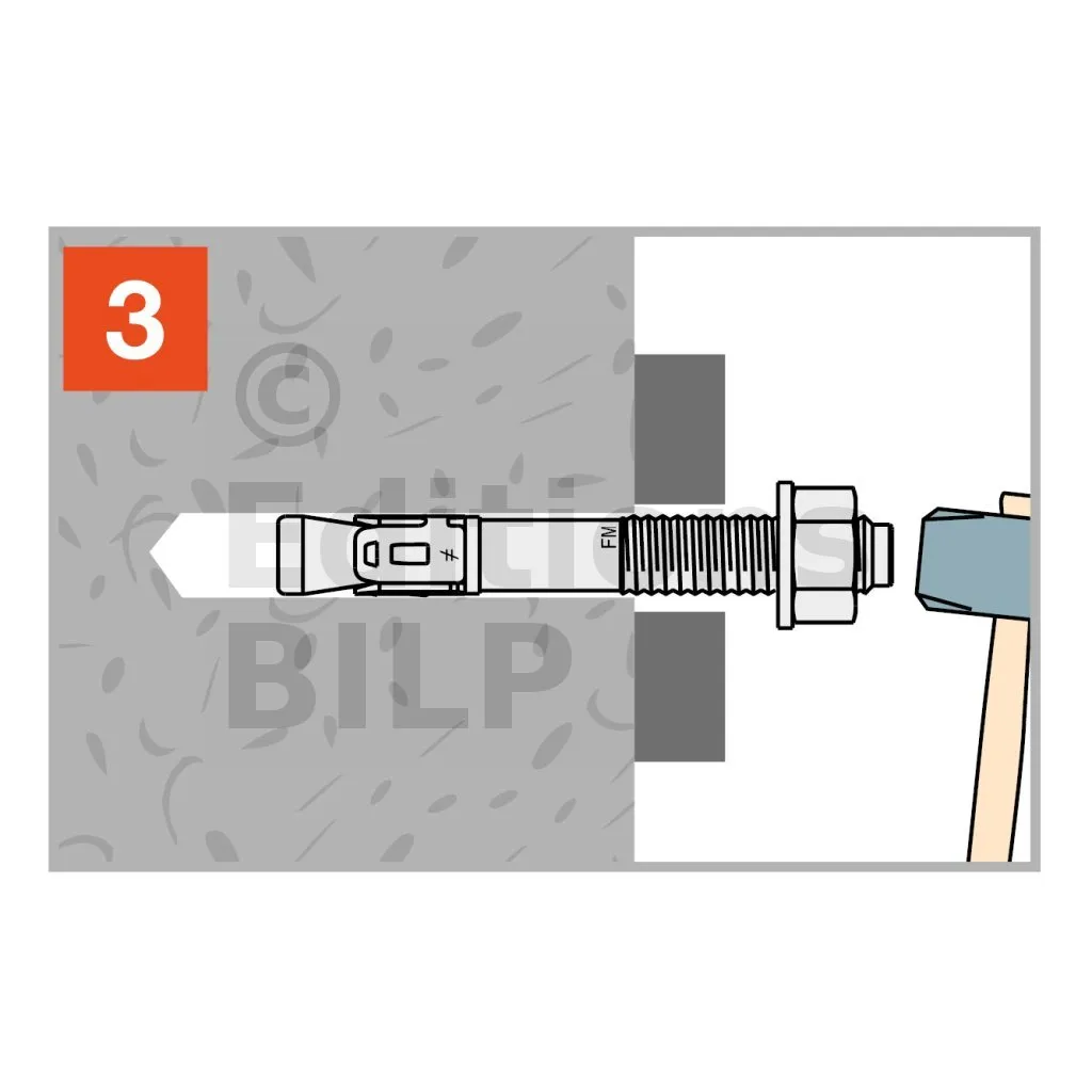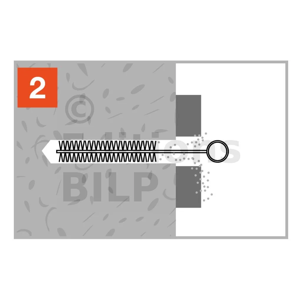 - Pose simple et rapide : écrou et rondelle prémontés et profondeur d’ancrage réduit ; Ø du filetage = Ø du perçage,