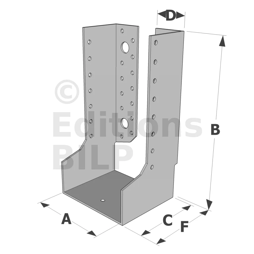 - Charpentes de toit : Ces grands sabots sont utilisés pour fixer solidement les poutres et les chevrons, assurant la stabilité de la structure du toit.