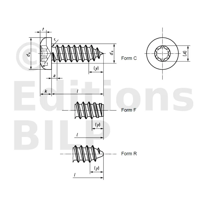 Vis à tôle à tête cylindrique bombée large - empreinte TX - Réf. 145853901302
