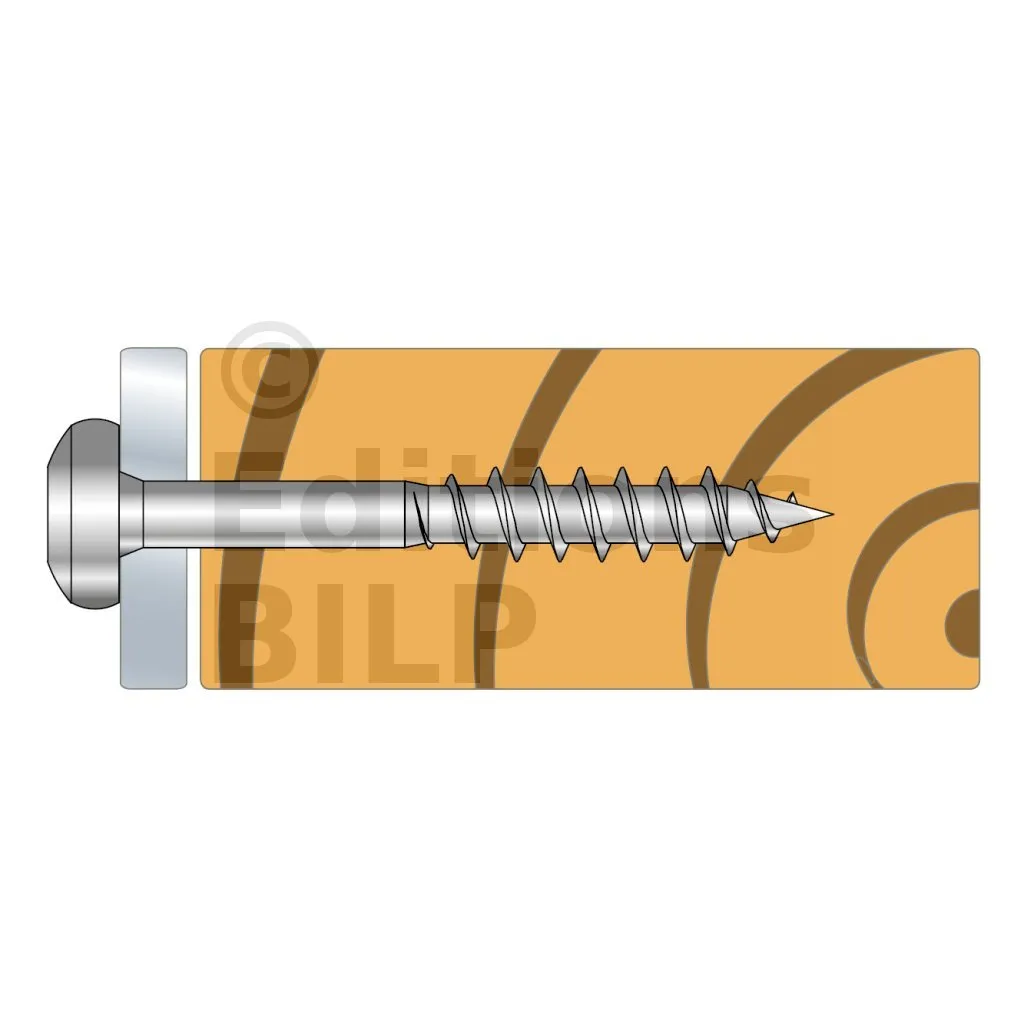 Fixation de tout élément acier inoxydable ou galvanisé à chaud sur bois, en intérieur ou extérieur.